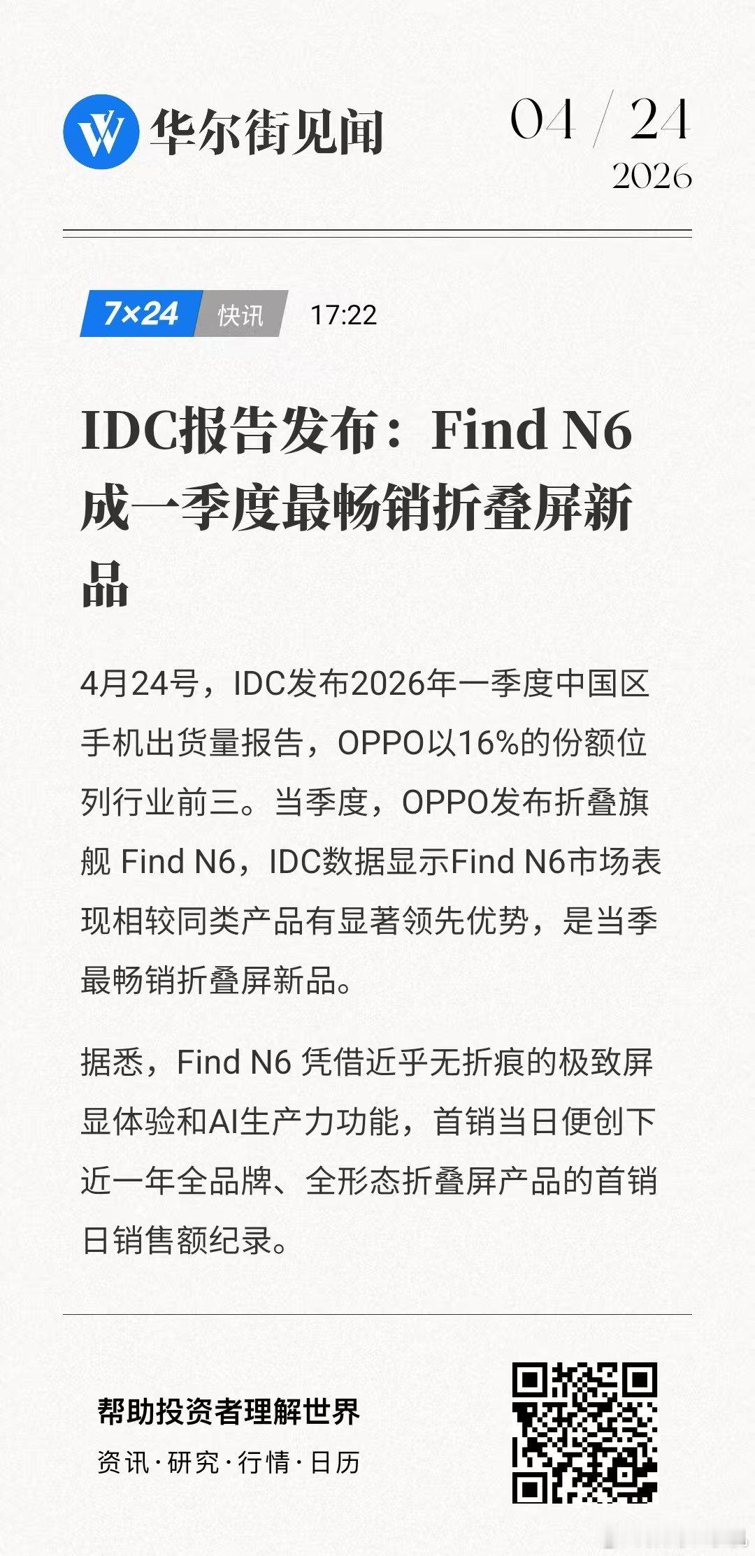 🎉IDC报告发布:Find N6成一季度最畅销折叠屏新品!