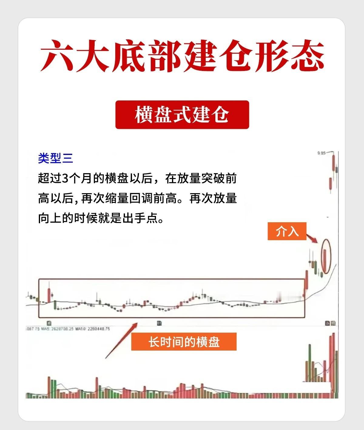 这六种形态是技术分析中关于主力资金在底部吸筹的经典图表模型。