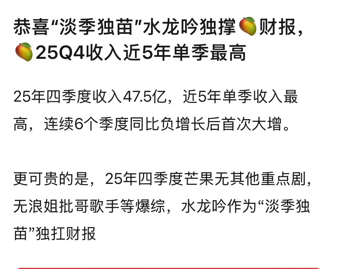 罗云熙水龙吟芒果财报2025年Q4,芒果TV迎来关键业绩节点——无重磅综艺、无头部大剧压阵,《水龙吟 》以淡季独苗之姿,独扛平台财报,成为当季唯一的增长引擎!!!🔥作为双榜冠军与全球爆剧,《水龙吟》以47.5亿播放量登顶2025四季度榜首,更是芒果全年唯一同比正增长的季度!熙哥牛!!
