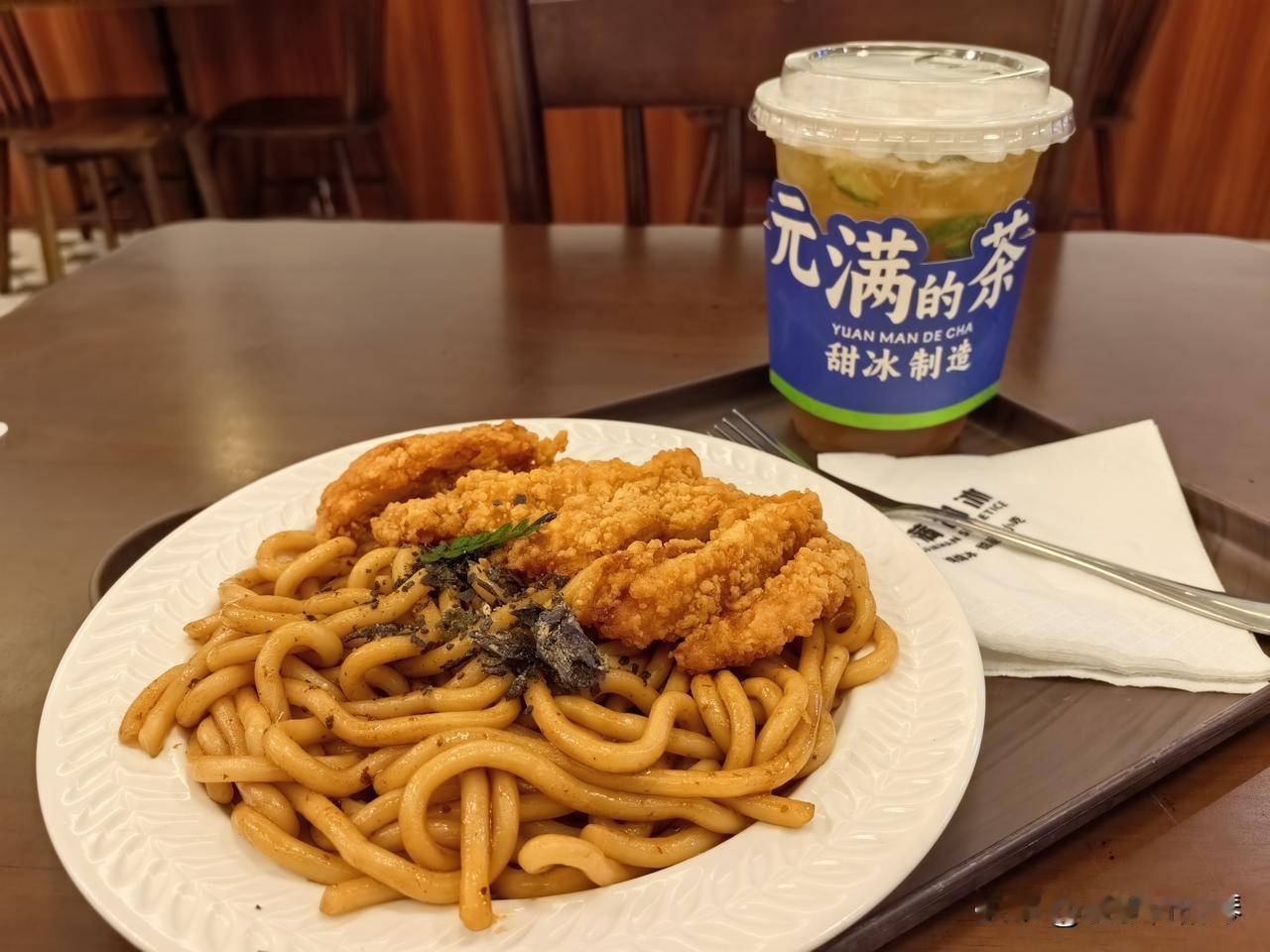 2️⃣ 鸡排乌冬面: 主食,现做,非预制菜。鸡排酥脆微辣,配有番茄酱与黄芥末酱,拌着XO酱的乌冬面,记得要趁热吃。