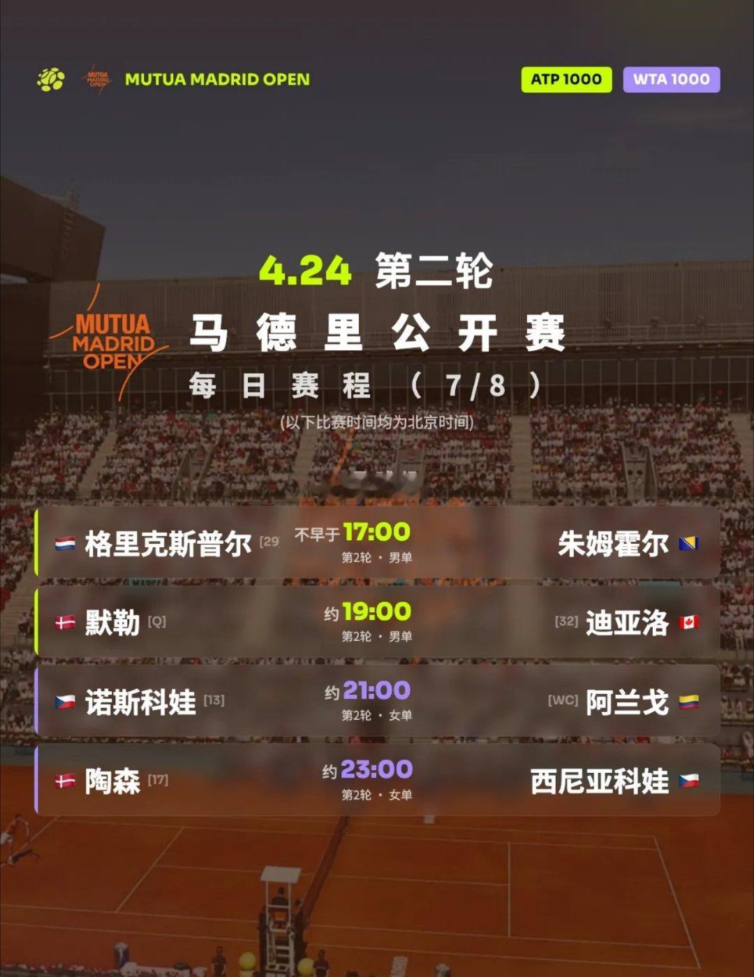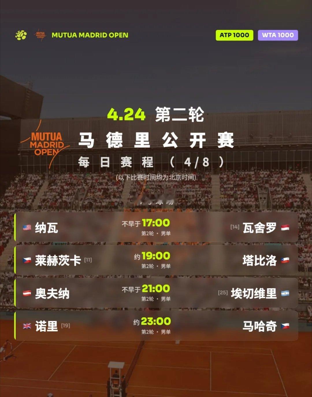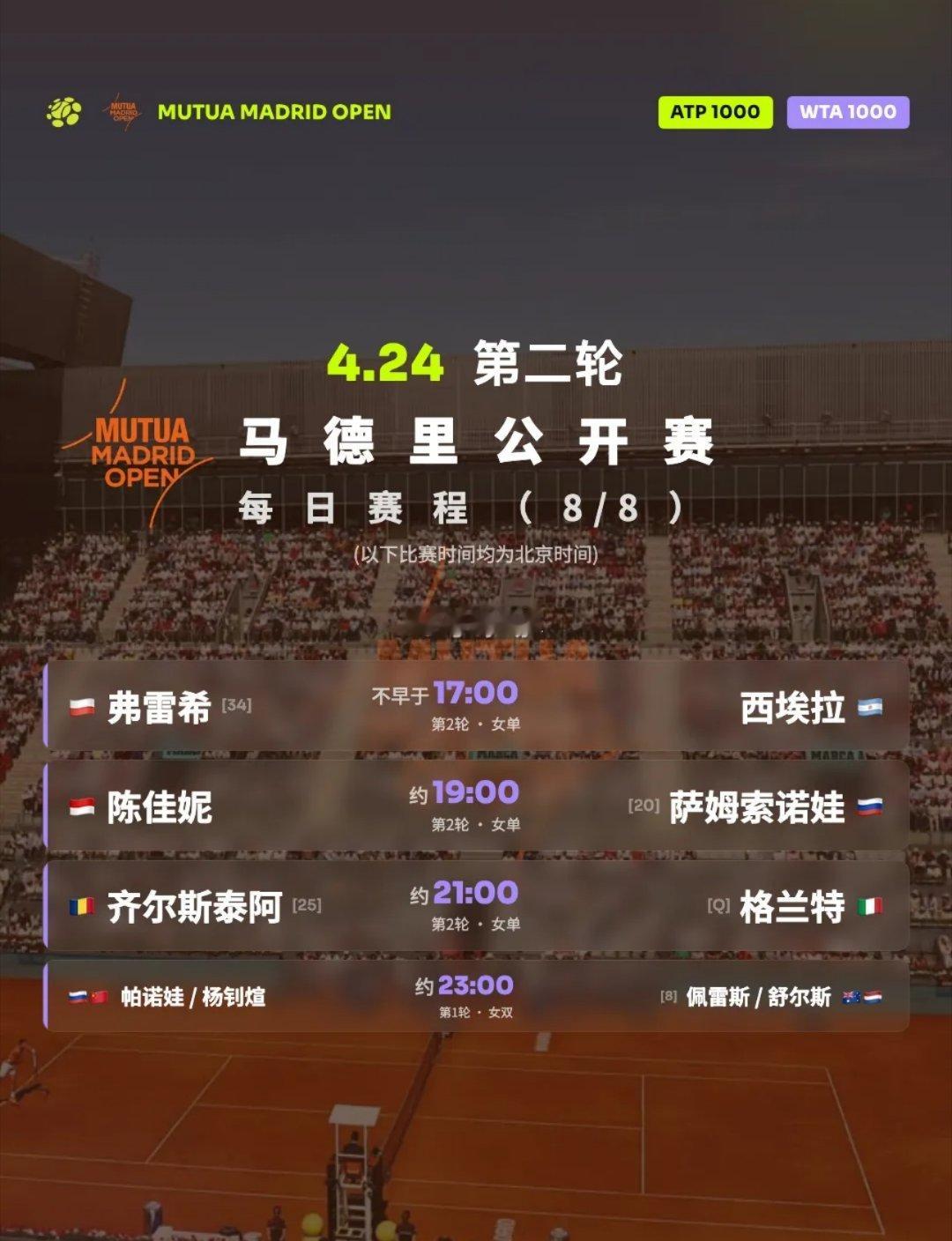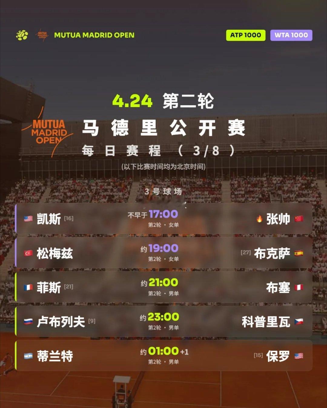 郑钦文首战就碰肯宁、 交手 2比0 领先; 张帅刚横扫吕斯、 第二轮直接挑战澳网冠军凯斯。今晚还有辛纳、高芙、菜巴金娜、霍达尔、穆塞蒂一整排焦点战、 马德里这张赛程真的从白天炸到凌晨。完整赛程看图、 所有时间为北京时间。郑钦文网球郑钦文马德里2比1肯宁