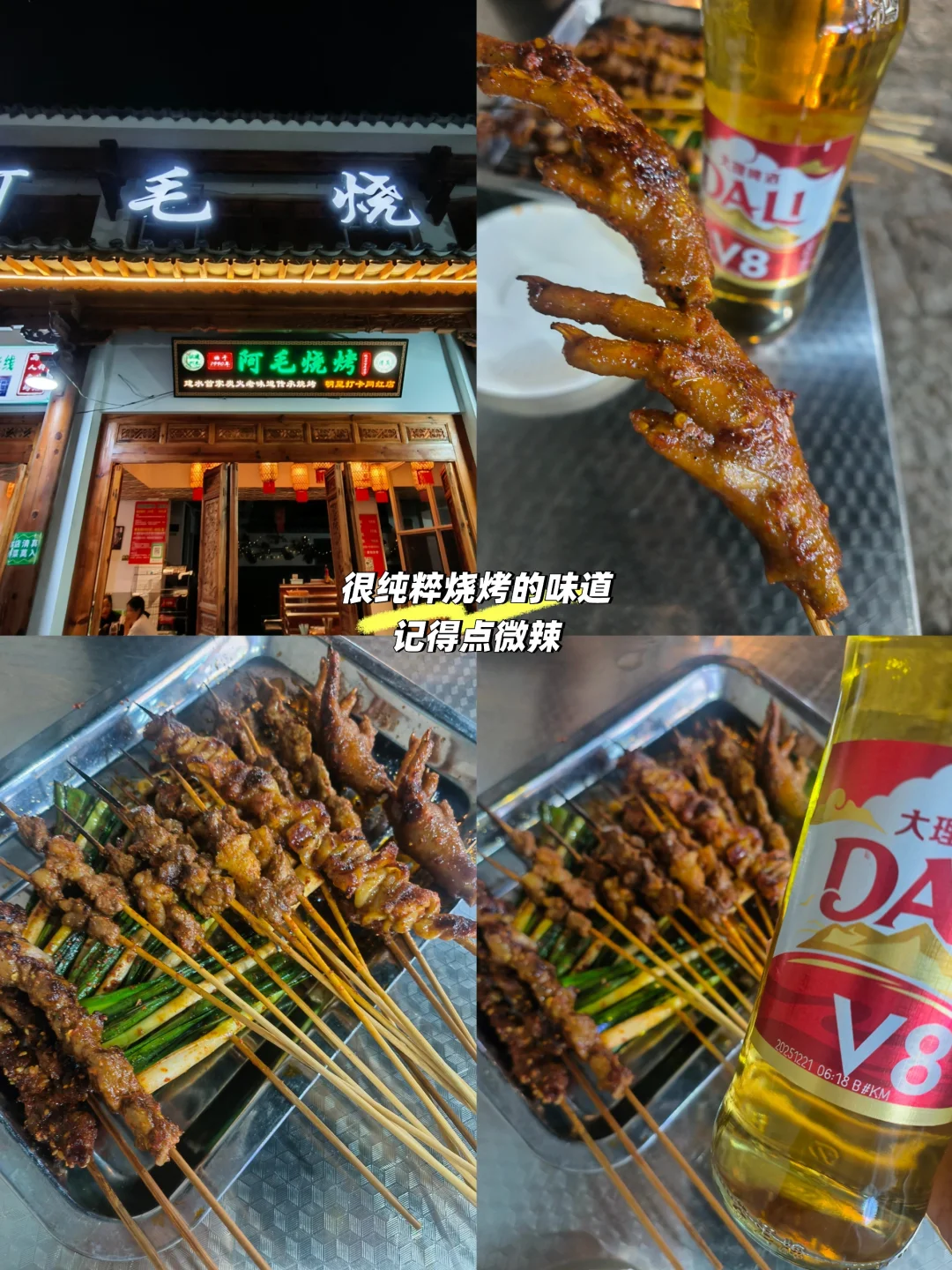 ✓阿毛烧烤。清真。我一直用很老式的烧烤味道来形容,是记忆里最简单的烧烤味道吧。记得点微辣就好。