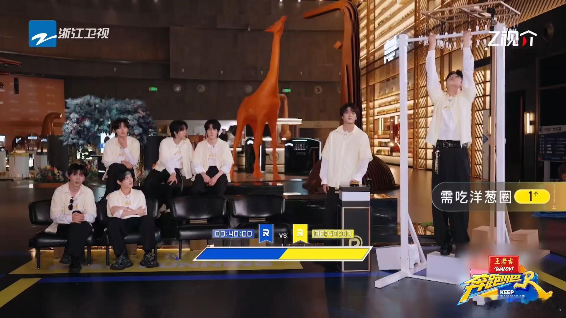 严浩翔引体向上使出了脚力奔跑吧 严浩翔为了吃到洋葱圈连脚力都用上了,引体向上做成