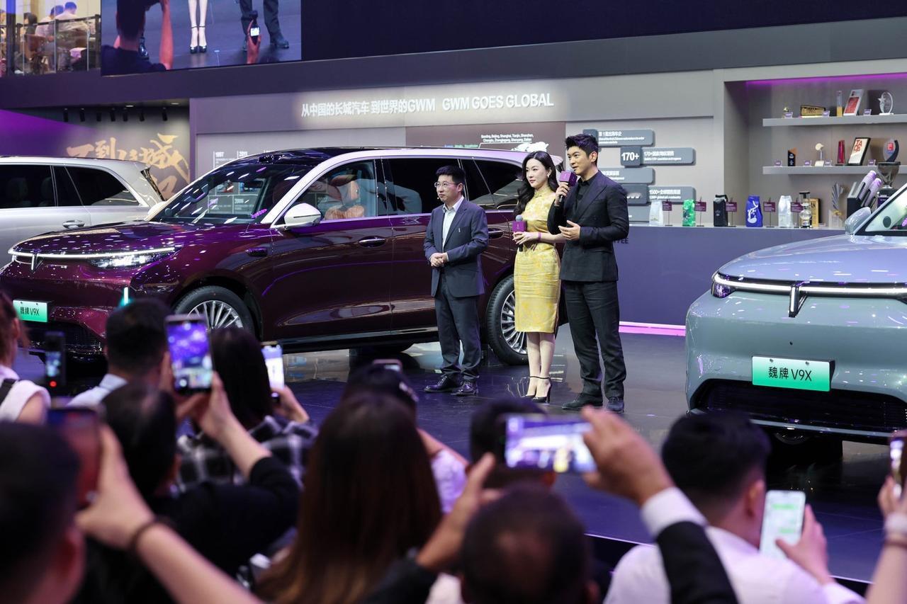 2026北京车展,魏牌V9X正式亮相,新车已于4月17日开启预售,预售价37.18-41.18万元,基于归元 S 平台打造,定位大型豪华旗舰SUV,同步展出EV、HEV、Hi4 混动三种动力版本。外观融合东方建筑美学,重檐庑殿顶前脸、飞檐悬挑车身、立体叠影尾灯极具辨识度,配备 Hi Light 智慧大灯,支持多类投影及节日迎宾灯语。提供长短轴两种尺寸,最长车长 5299mm、轴距3150mm,配色选择丰富。内饰豪华配置拉满,搭载多联屏组合与8295P座舱芯片,搭载全栈自研小魏同学AI 智能体;配备31扬声器Coffee AI Sound音响、全域分区声场,影音体验出众。采用高端Nappa真皮六座布局,二排零重力天王椅带22点按摩与电动腿托,主驾坐垫软硬可调,全车多向通风、加热、按摩全覆盖。细节配置贴心,拥有48处储物空间、副驾50W无线快充、7L冷暖车载冰箱、全电动车门与承重电动侧踏。动力依托 800V 高压架构,混动版搭载2.0T+4挡混动变速箱组合,多版本动力可选,系统最大功率最高550kW;提供多款电池组,最长纯电续航470km,综合续航1700km。底盘配备闭式双腔空悬、可变阻尼减振器与20°后轮转向;搭载Thor-U高算力智驾芯片、VLA大模型及27 个传感器,AI行车智能体加持,智能出行与驾乘舒适性全面升级。【来自懂车帝车友圈】