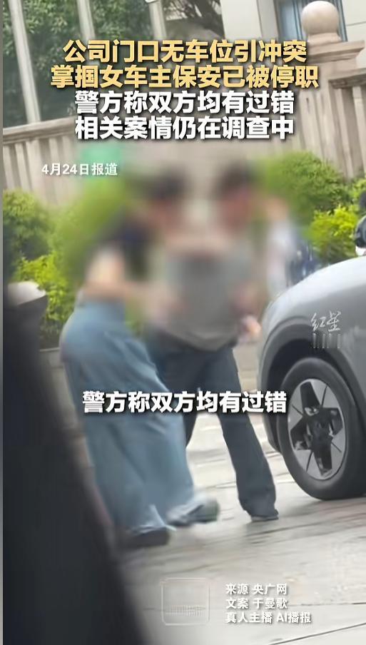 信息来源:《公司门口无车位引冲突 掌掴女车主保安已被停职 警方称双方均有过错 相关案情仍在调查中》红星新闻