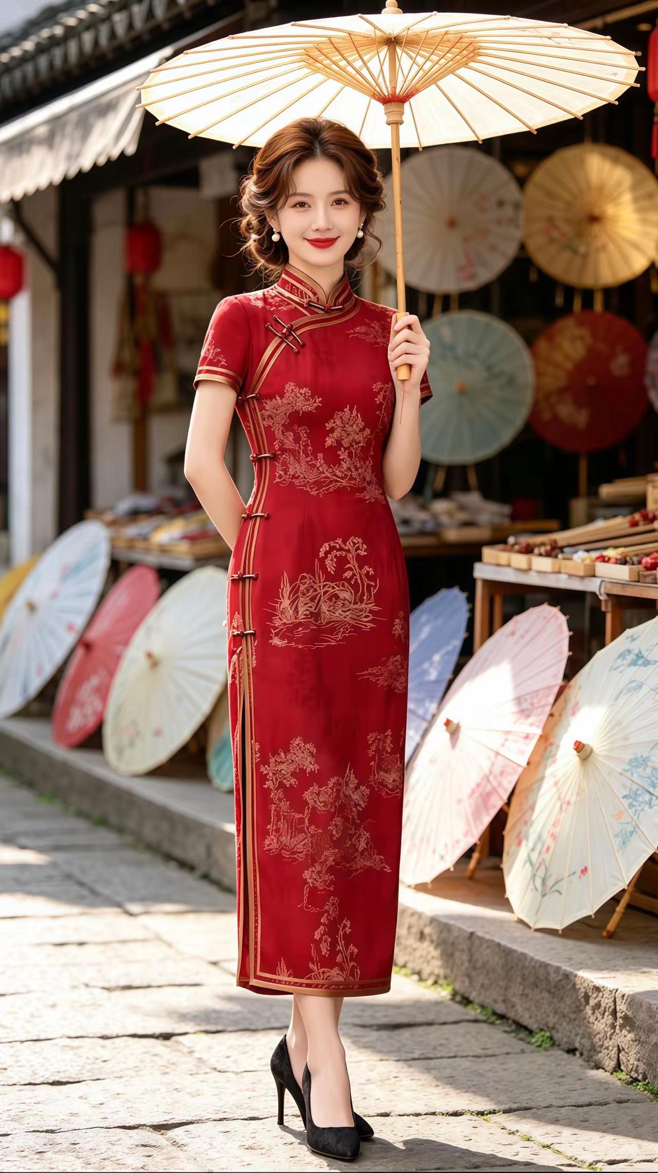 优雅东方美人,红白相间旗袍,尽显古典韵味。