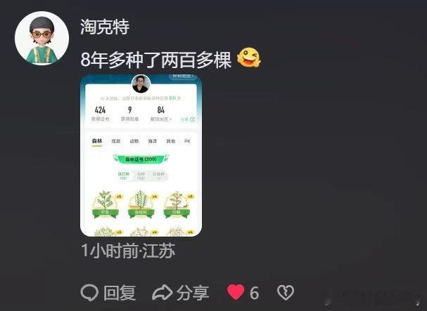 海外网友说只有中国在让世界变美好居然有人8年种了200多棵树,中国真的在用行动让世界变美好,这种“硬核”又温暖的担当,应该被全世界看到,这时候我们在蚂蚁森林积攒的能量没白攒,全部化成了自己种的n颗树!