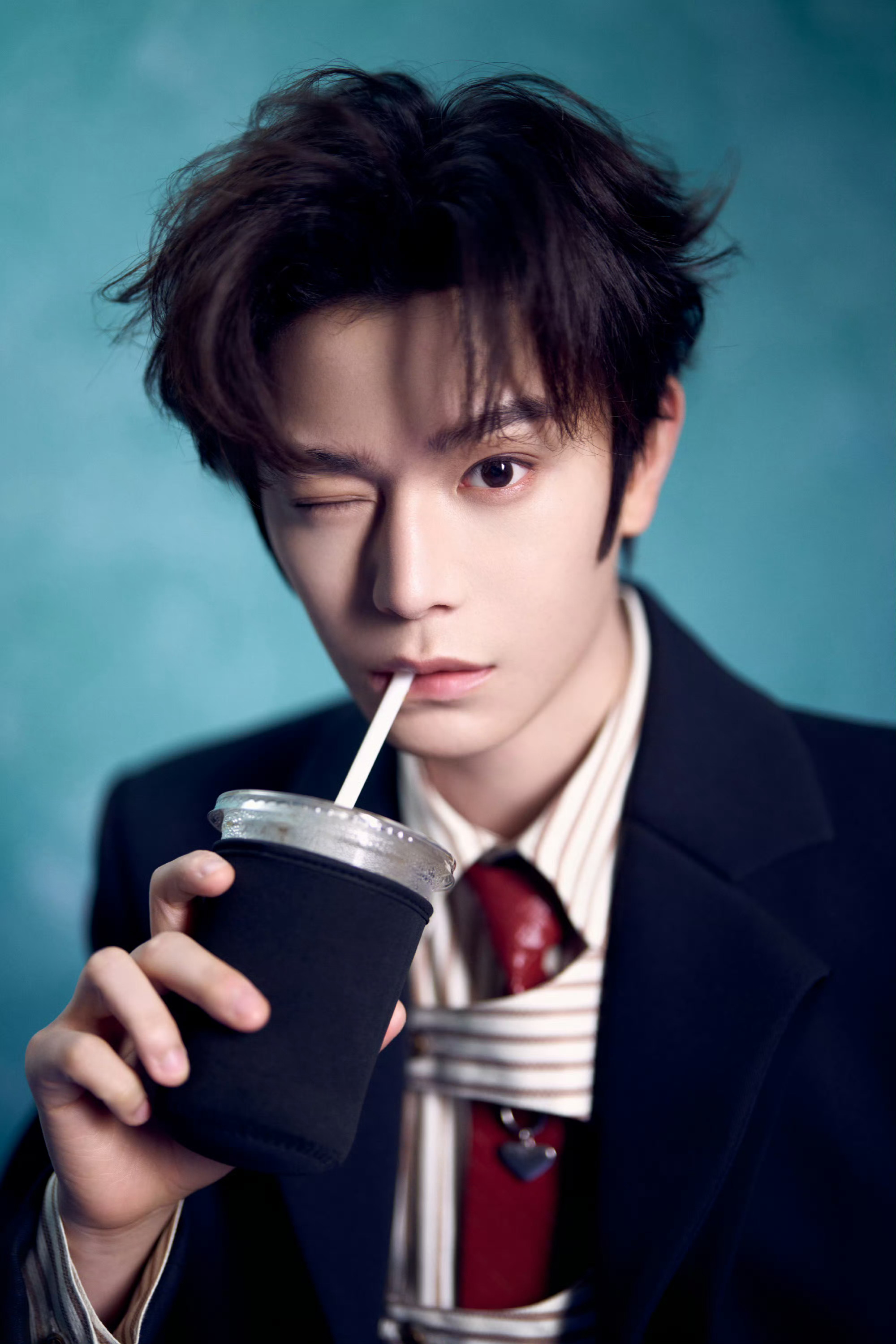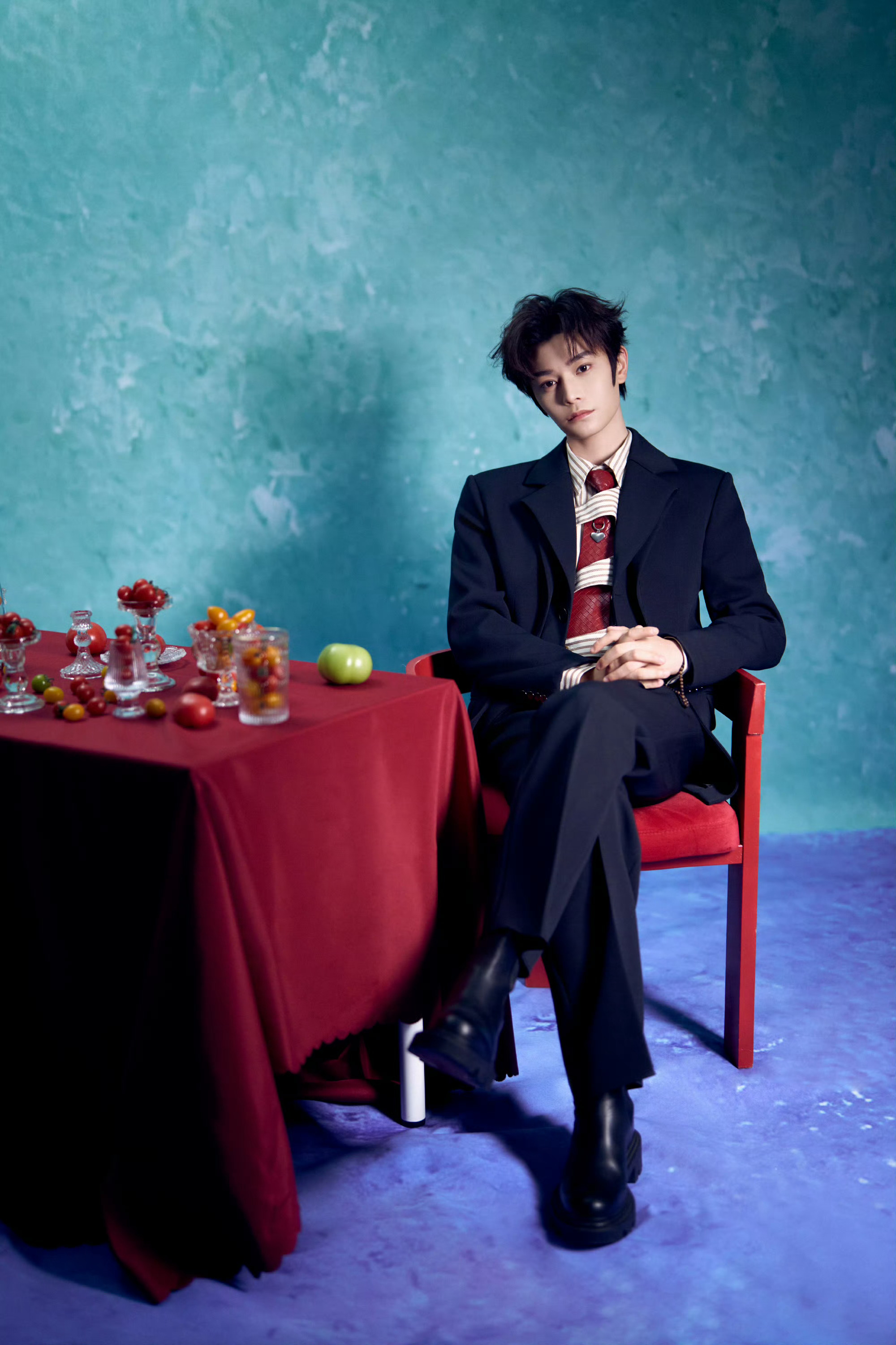 丁禹兮 今日品牌活动造型,一身西服套装,搭配条纹衬衫、皮革编织领带… 层次分明的穿搭,俊朗清新的气息。🍅🥤时尚灵感解读