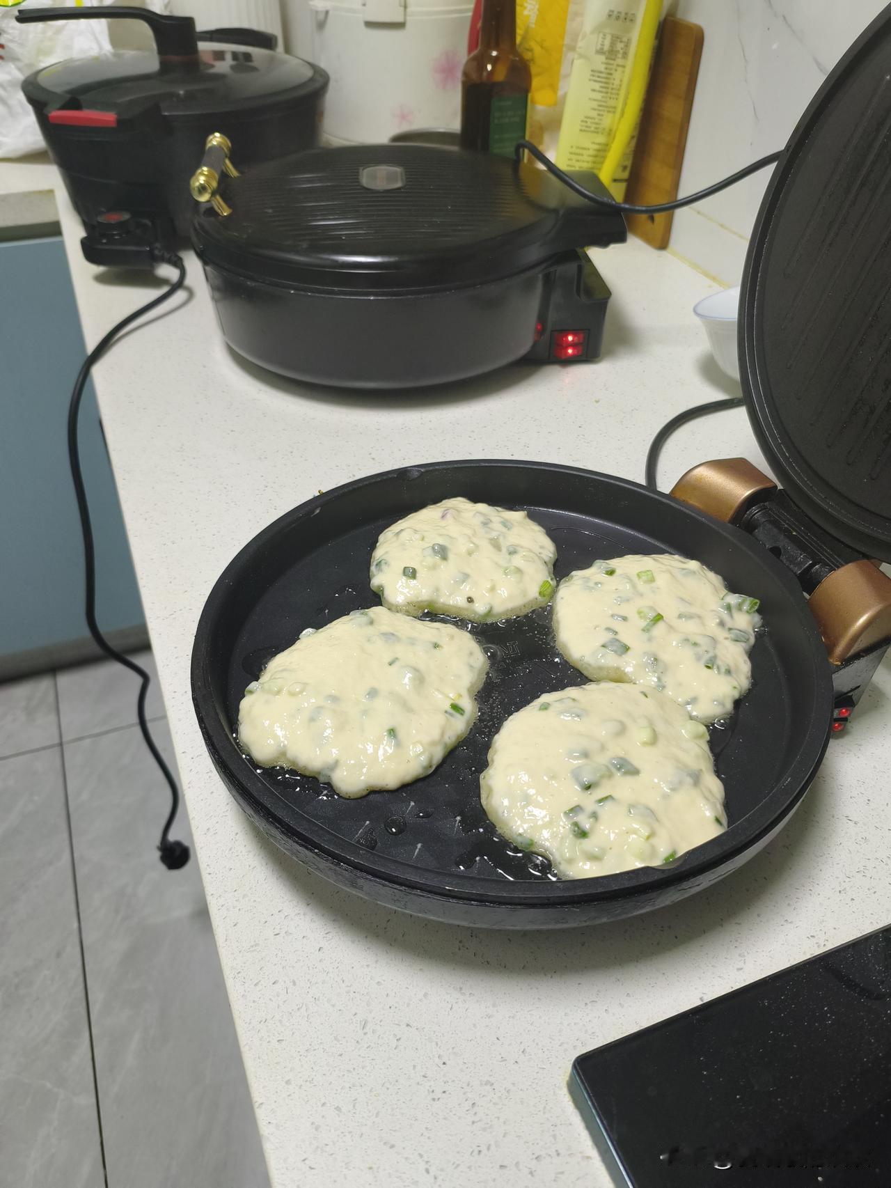 这就是我买三个电饼铛三锅并用一起烙饼的理由。
