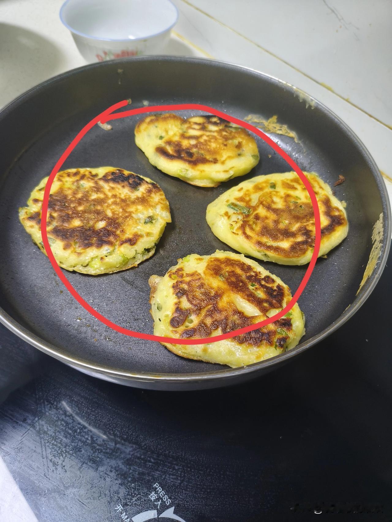 平底锅里烙出的葱花饼卖相实在是太难看了。