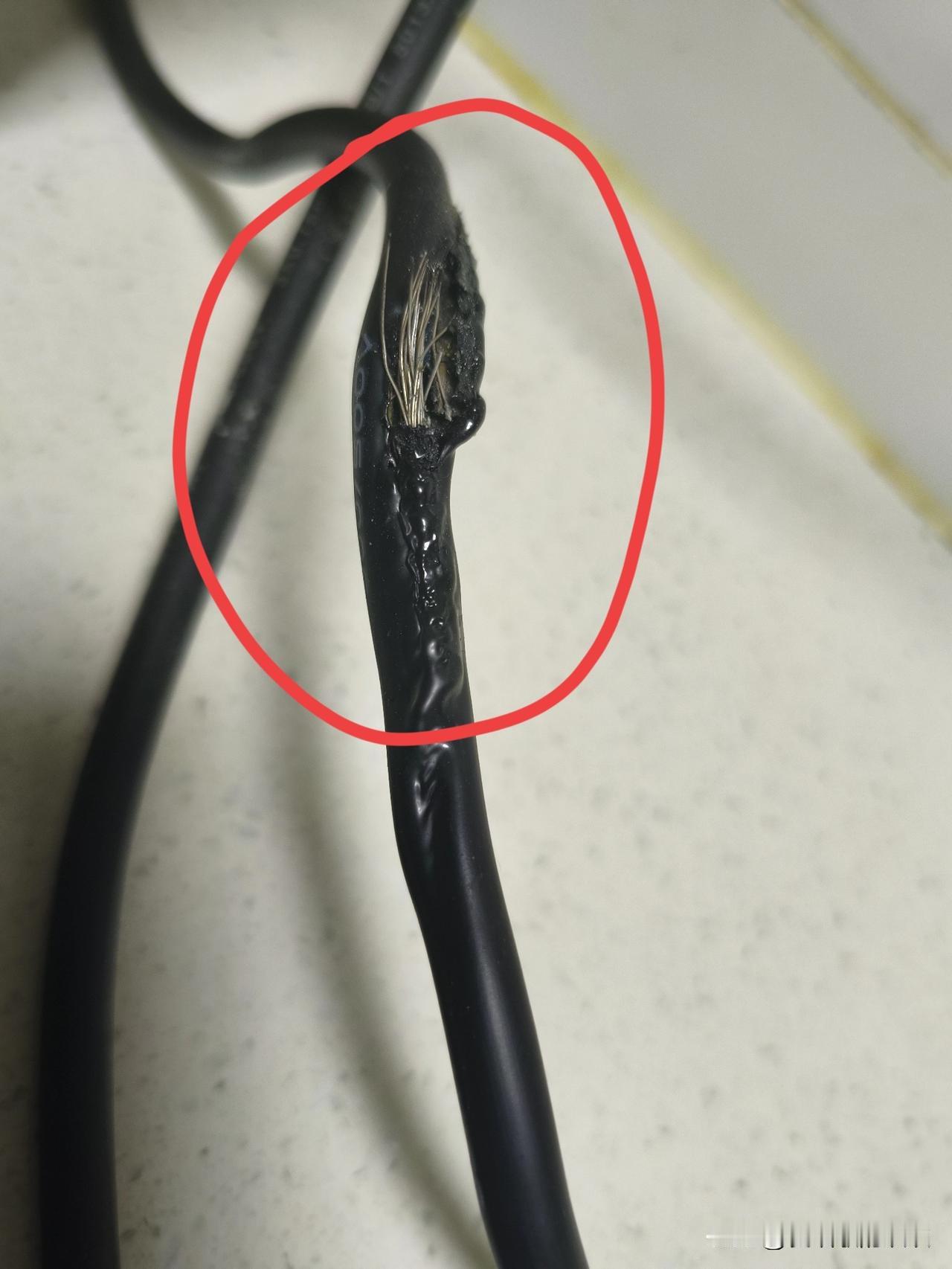 结果,没想到面糊刚放进第一个电饼铛,准备插第二个线源的时候,就听见“碰”的一声,电饼铛的线爆炸开了(下图)。
