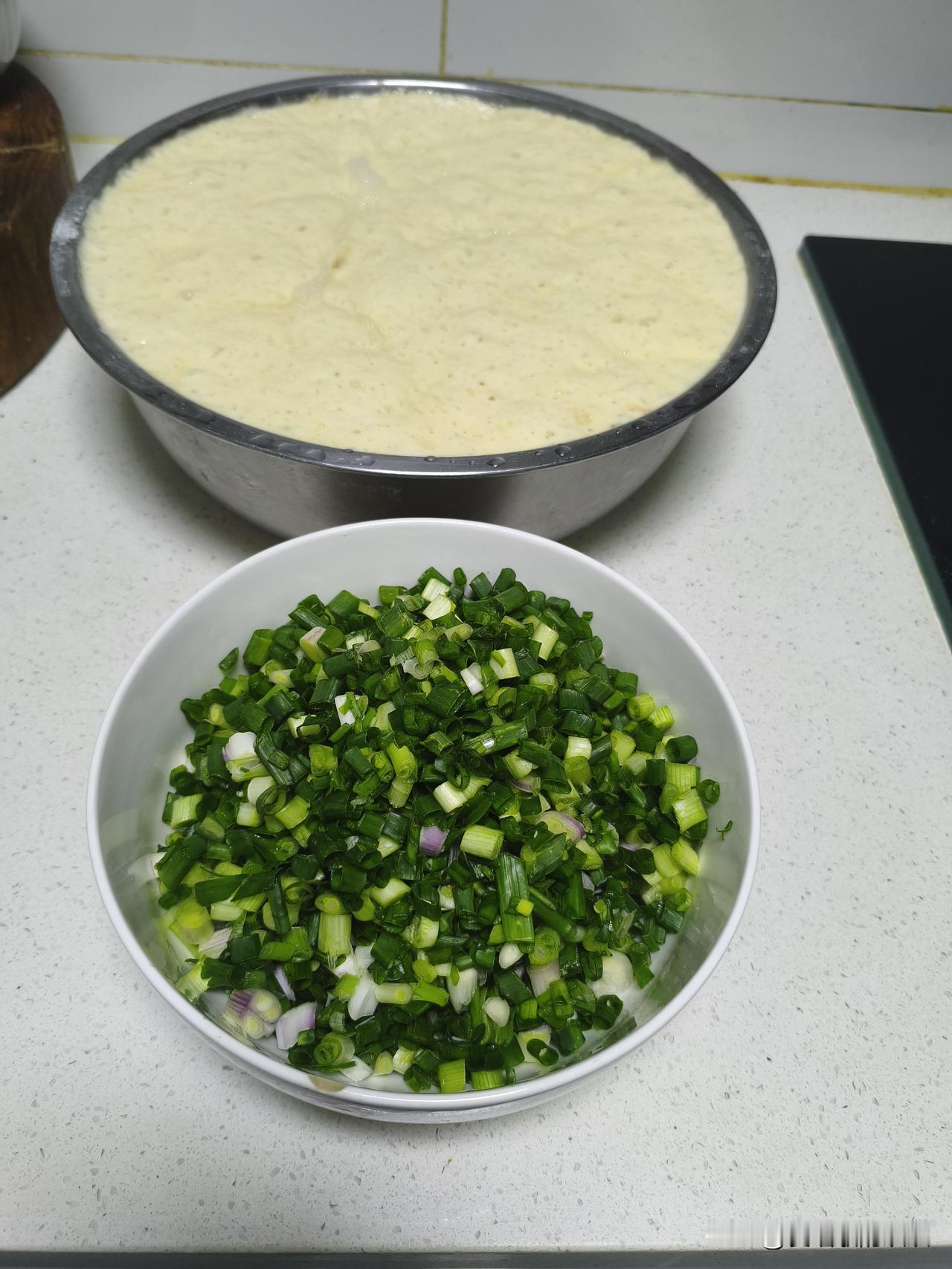 回到家换完衣服,我一边跟我妈视频,一边又是发面,又是洗葱,又是切葱花。忙的不亦乐乎。