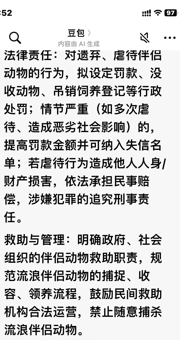 伴侣动物立法,等同于给猫狗以人类的尊严和待遇,像保护濒危动物一样享有各种超国民待遇,你打死一条咬人的猫狗有可能被判刑。