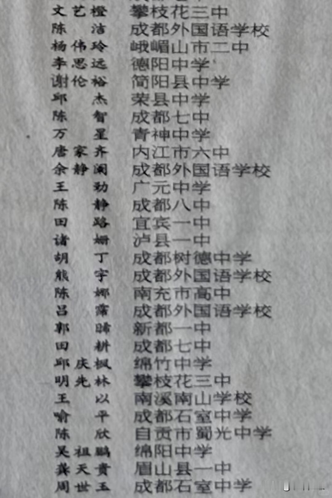 这是1999年,北京大学录取四川考生的名单。