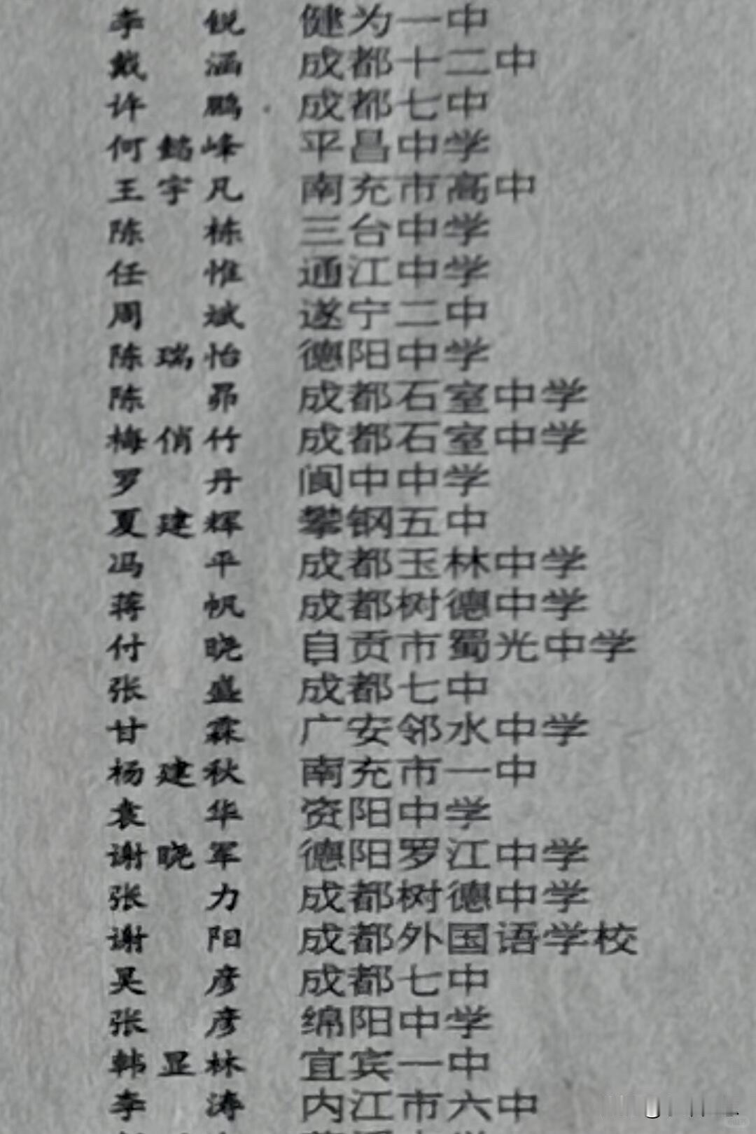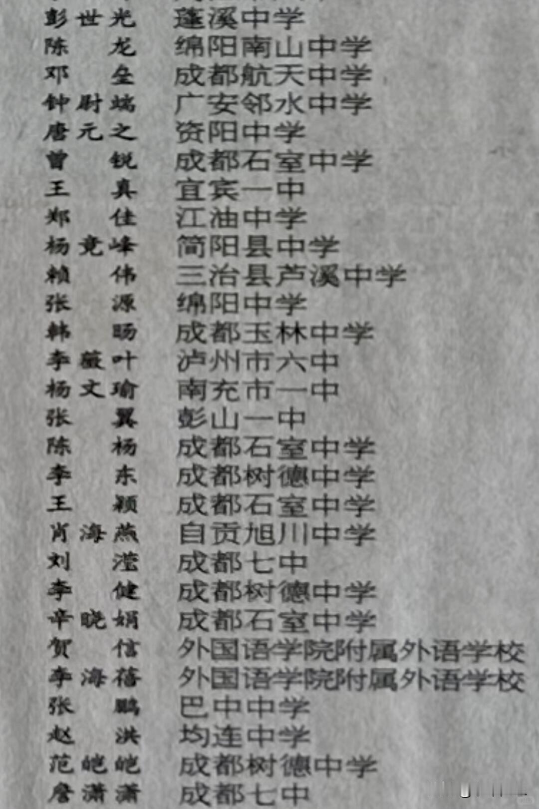 上面的名字现在随便搜一个,身份应该都不得了。里面最厉害的就是许晨阳,现在是知名数学家,堪称北大数学的黄金一代。而名单上最可惜的一个人,就是绵竹中学的邱庆枫。