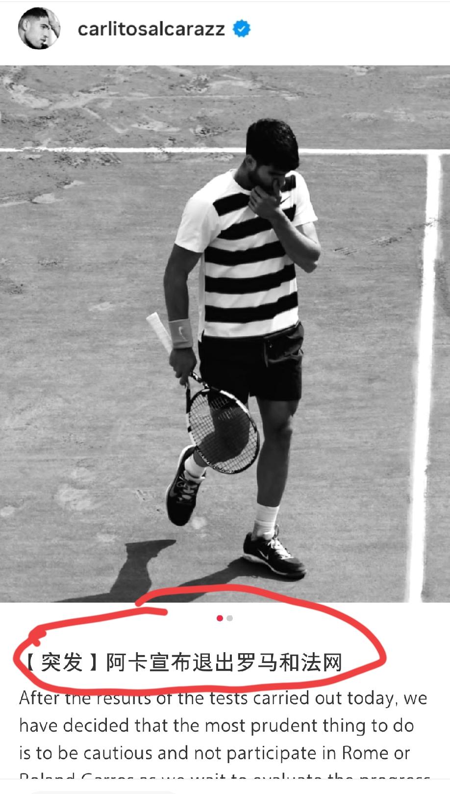 阿卡因伤接连退出马德里、罗马和法网。机会是给到辛纳了,现在就看他如何笑纳阿卡的这