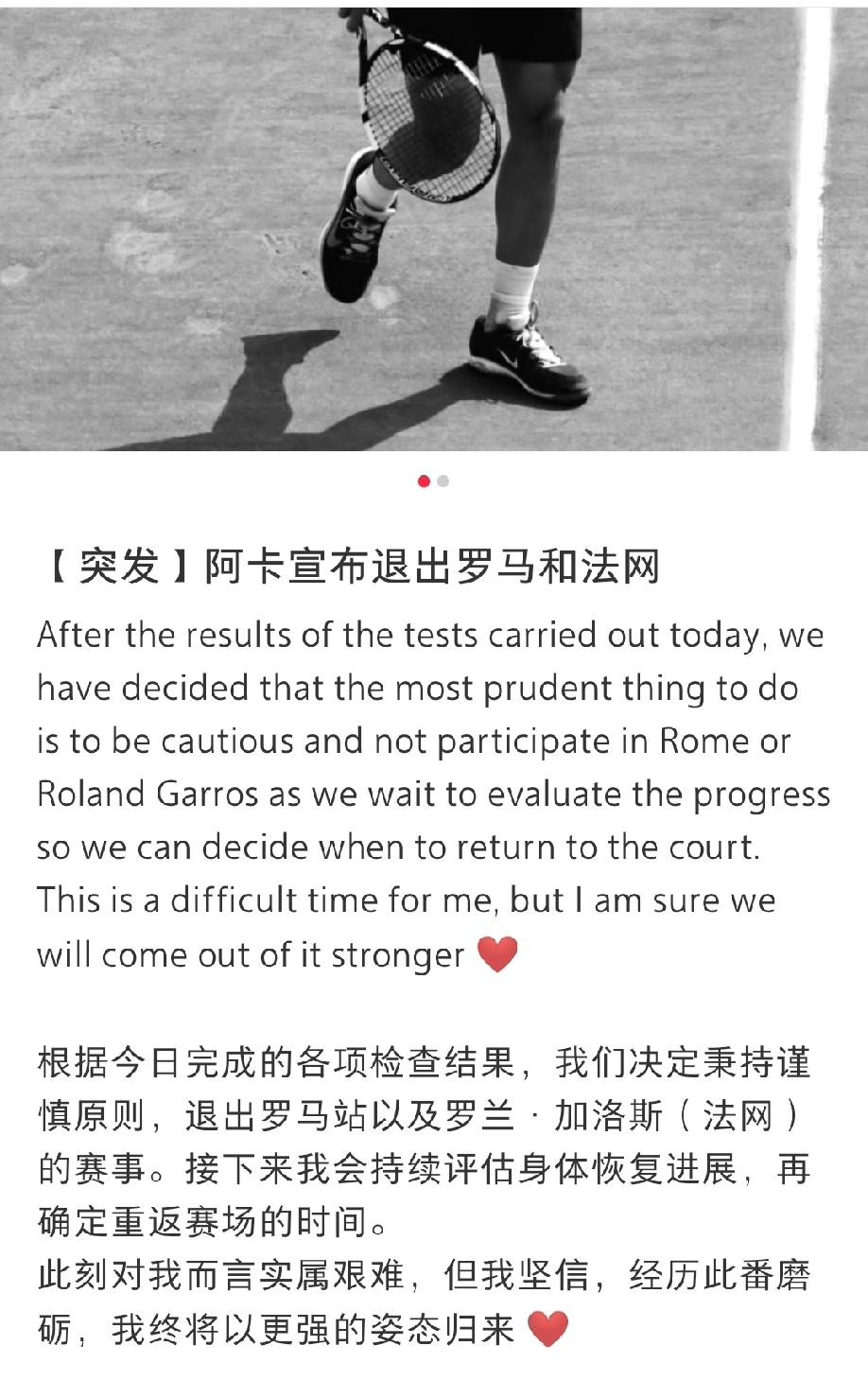 阿卡当时手腕受伤的时候,相信绝大部分球迷都没有想到他整个红土赛季都报废了吧?