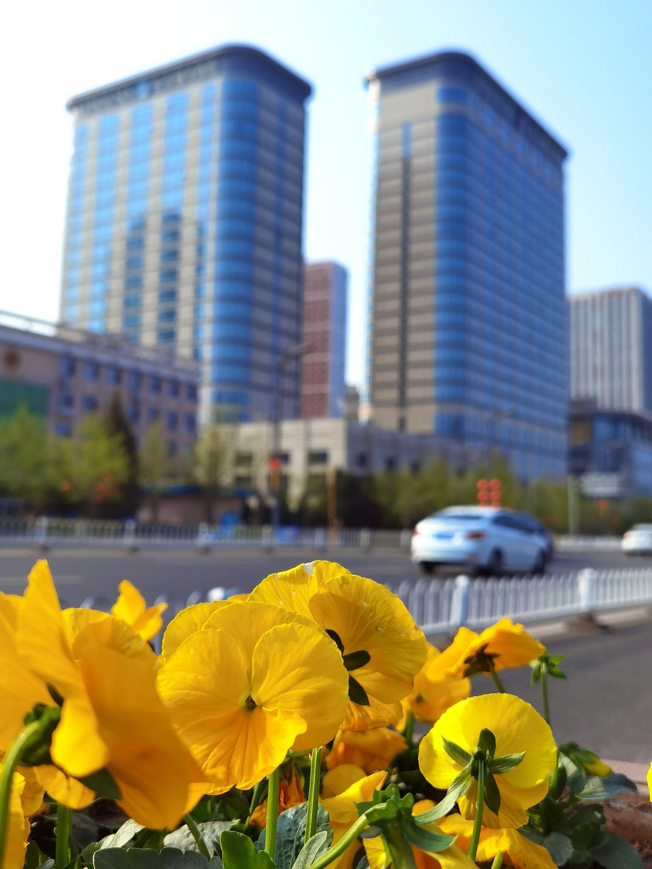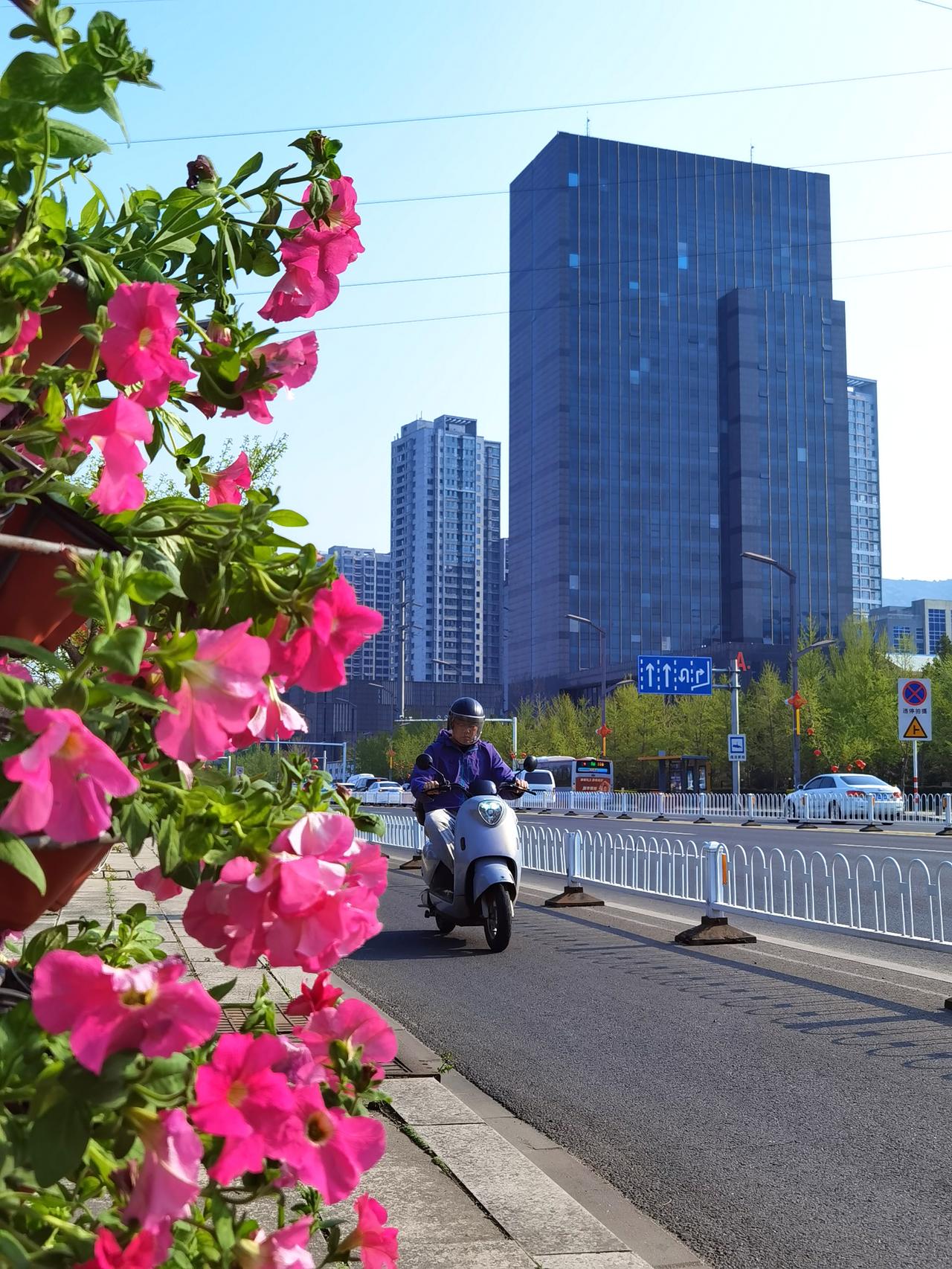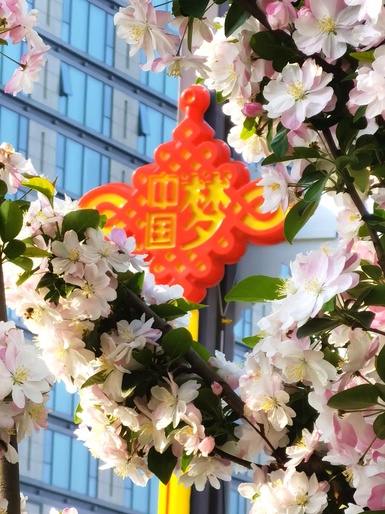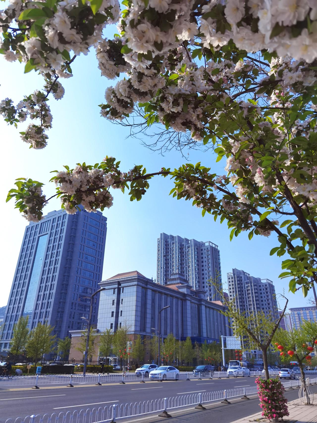 迎宾路两边种满绿植, 四月正是春花盛开的季节, 因此迎宾路瞬间变成了“鲜花大道”。五颜六色的春花和鳞次栉比的高楼,让迎宾路变得分外迷人。