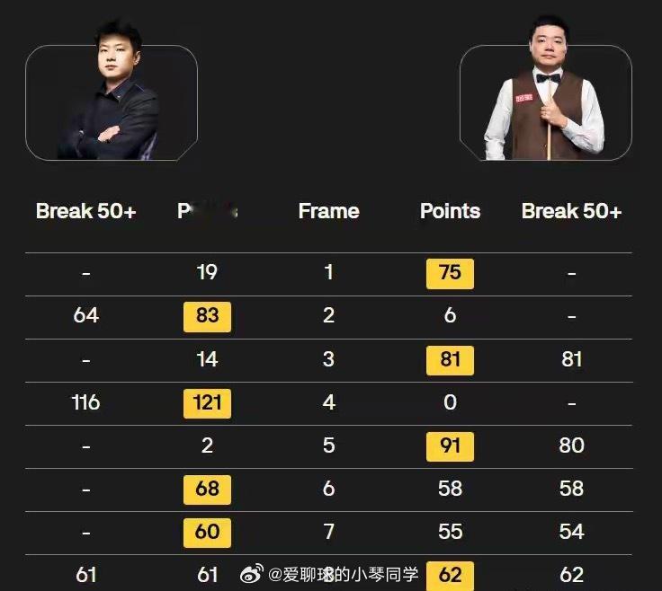 这轮赵心童拿到了罚分和上手机会,进攻到52分再度转为防守。这次,丁俊晖拿到了上手机会,眼看要超分了,结果蓝球失误。此时,赵心童没有直接上手的机会,只能防守一杆。丁俊晖解球,母球摔袋。随后,赵心童长台打进蓝球,又处理了粉球,68-58完成单局逆转,比分来到了3-3平。
