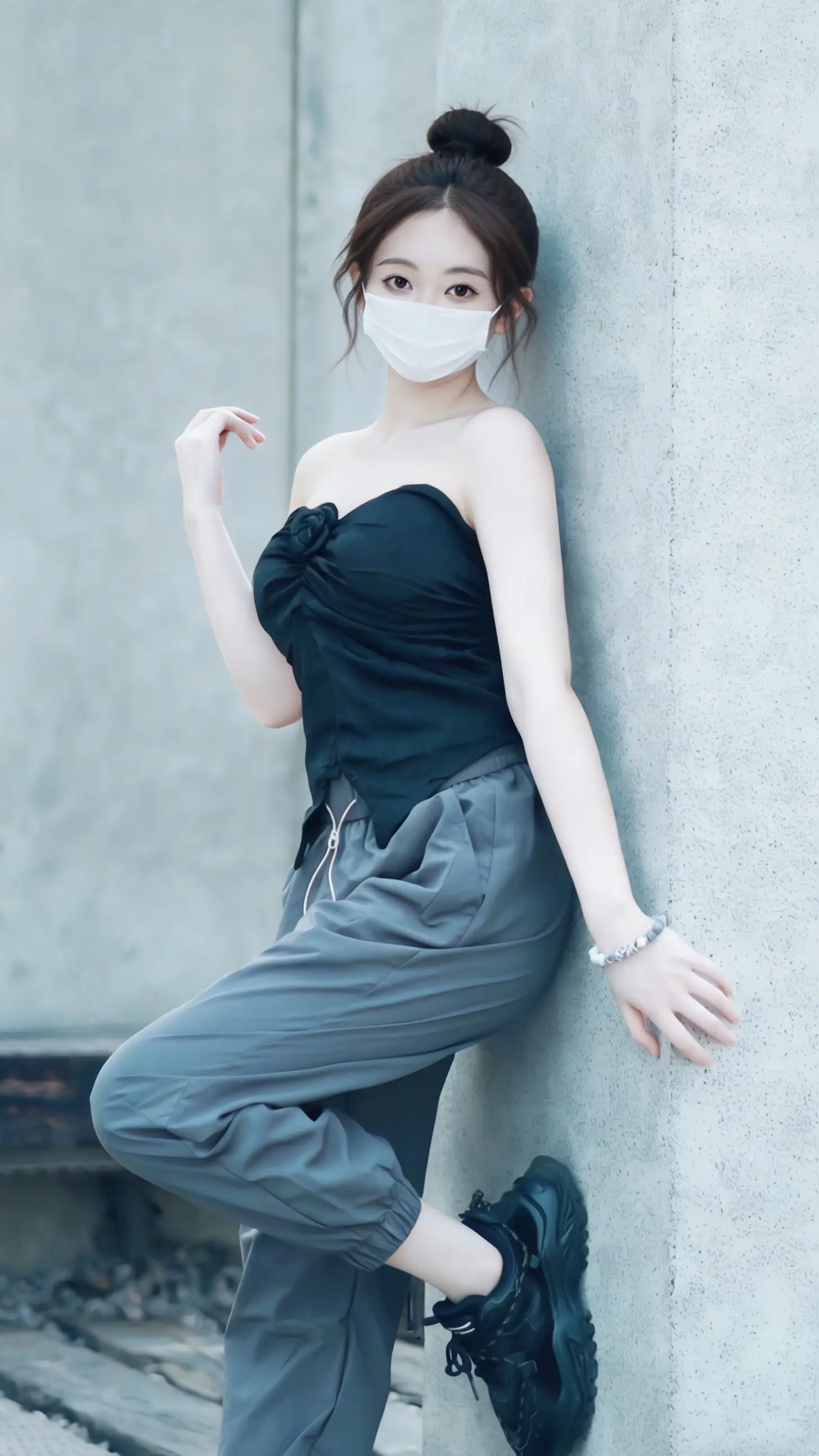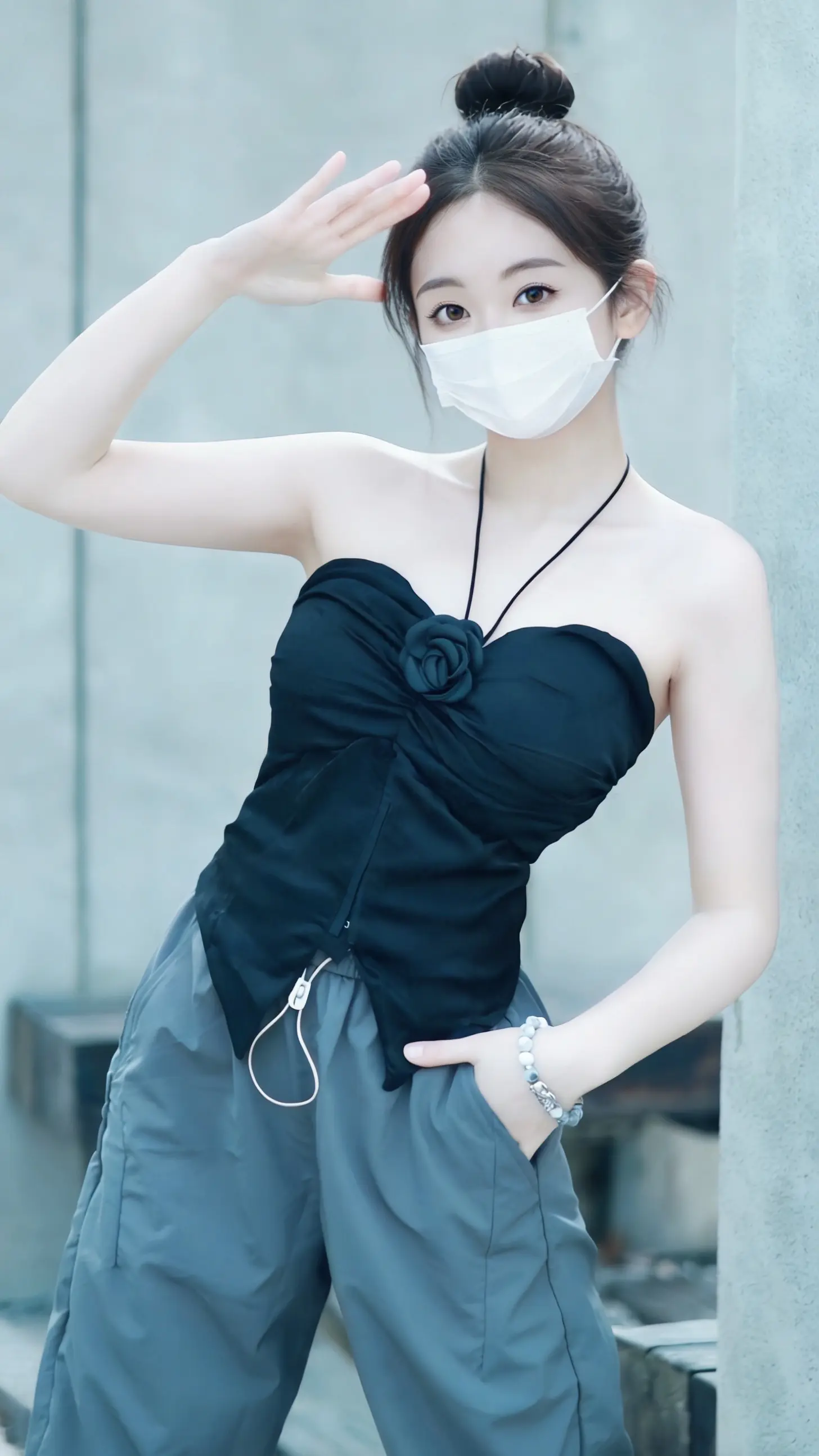 黑玫瑰挂脖抹胸+灰束脚裤,甜酷感直接拉满。谁懂啊!黑玫瑰挂脖抹胸+灰束脚裤,甜酷感直接拉满✨