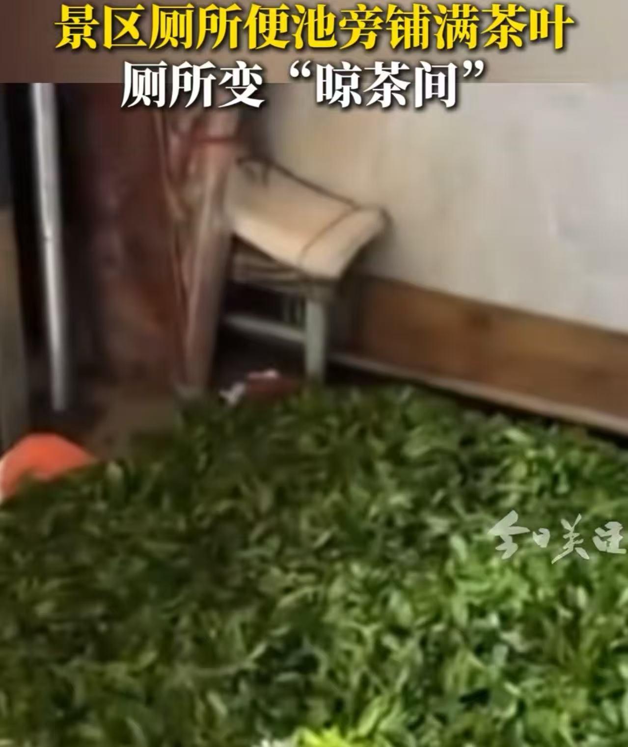 丽水摊上大事了!女子去丽水旅游,在景区上厕所时惊呆了,厕所地面上居然铺满了村民晒的茶叶!女子发视频质问:“厕所臭气熏天,地面都是污垢!茶叶晒干不洗直接就炒,在厕所里晾过的茶叶,上面得沾多少细菌?”