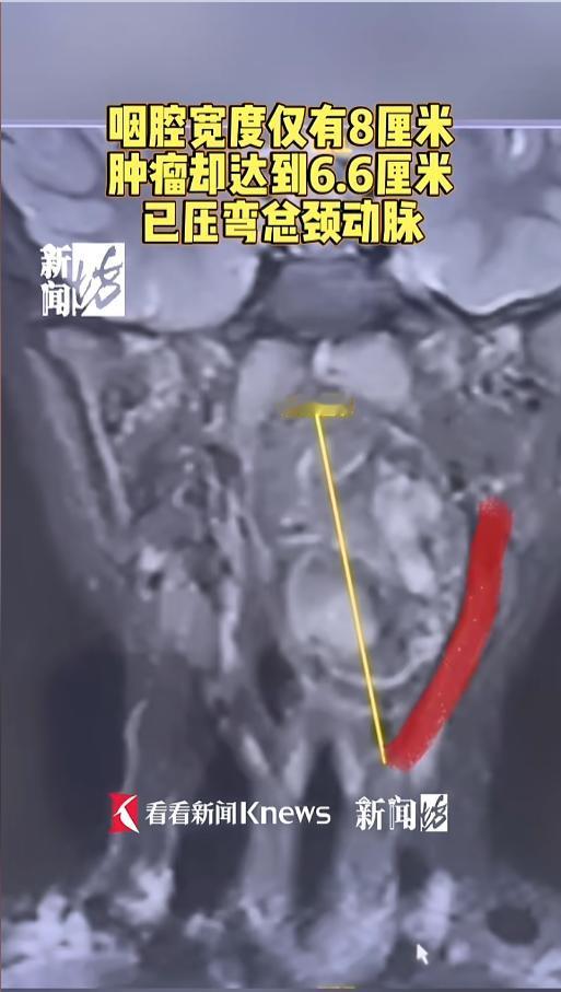 现在这个瘤已经很大了,直径高达6.6厘米,压迫了周围,压弯了颈动脉,有可能引发窒息致死!经过手术,医生将这个瘤分成两部分取了出来,孩子也逐渐恢复了健康,以前不吃的东西,现在也能正常进食了!