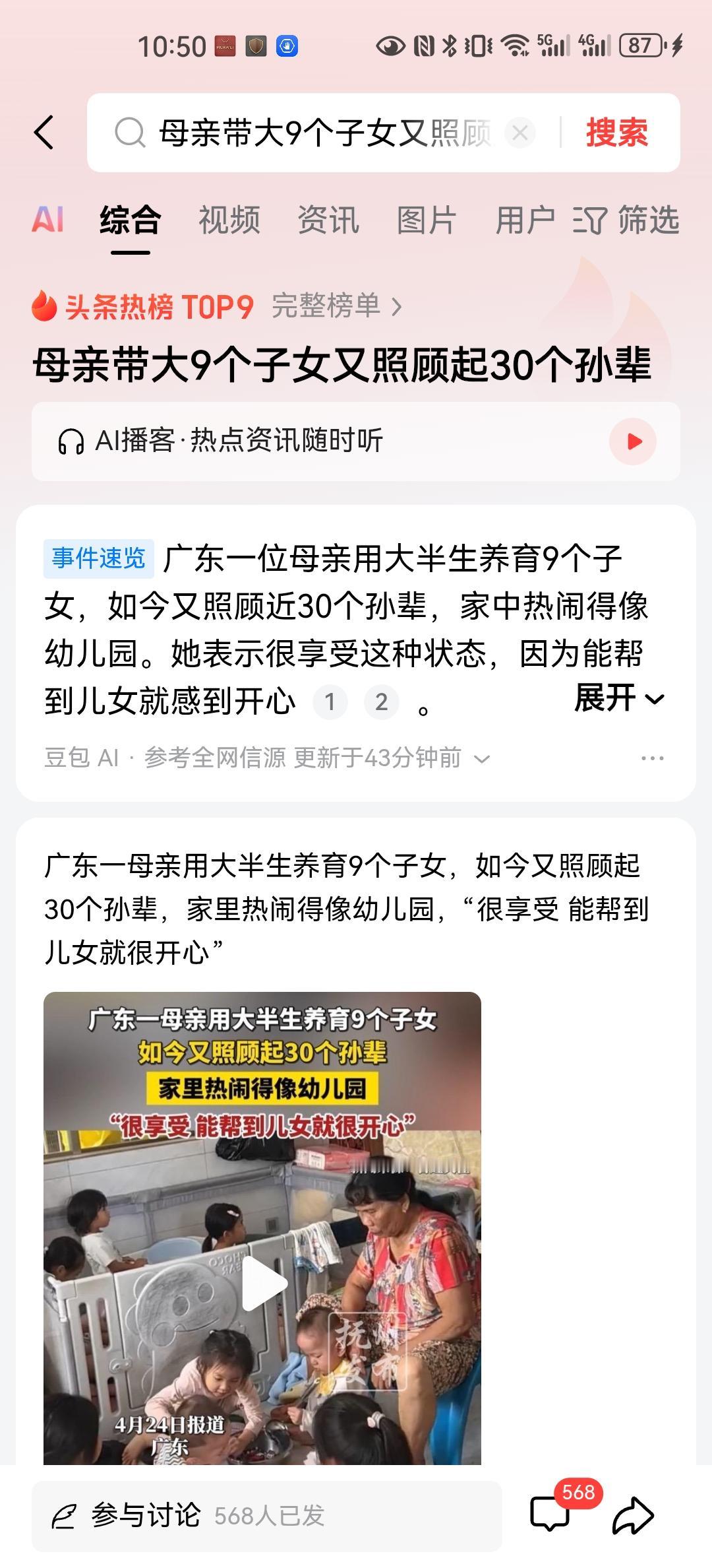 其实养大9个子女已经非常不容易了,即使是属于特别勤快的母亲,在这个养大过程中也充满了艰辛和劳累。老了真的应该让母亲歇一歇了!现在又打着所谓大家庭的旗号,把孙辈放在母亲那寄养,真的感觉母亲这一生好可怜,他们的子女真的不太懂事。