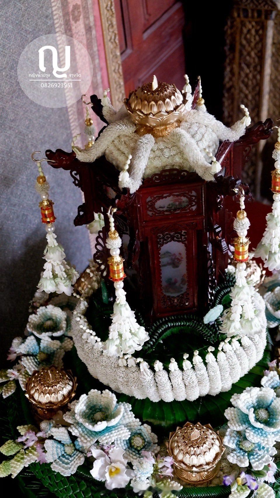 王室王室泰国王室王室旁支 “华人做出来的东西就是精致”红唇姐的伯尔曼小纸人儿,原来身上还贴了名字的纸条,这是在告诉红唇姐他是谁?而且纸扎师傅还贴心的把伯尔曼手上拿的设计稿一比一还原了,尽力模仿原图的风格,不是瞎画几笔了事,真是有心4月23日,育坤和吉帝亚功家族还主持了另一场放水灯的仪式,这些水灯和花艺是另外一个华人团队制作的。主要挑选了一款以红唇姐命名的白色兰花,加上栀子和茉莉为主体,缠绕制作了现场的各种摆花和水灯。看实物真漂亮啊哎暹罗真有不少出色的华裔工匠,虽然离家去国百年,但是传统的中华手艺没丢,还能融合暹罗当地的质材和审美,设计出别具匠心的作品,人才啊
