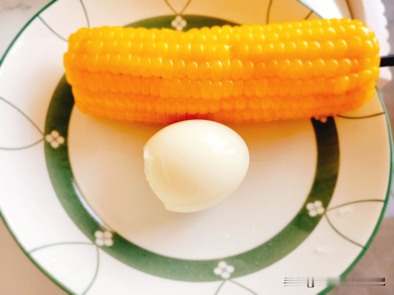 今日份轻食早餐:一个水煮蛋、一根玉米、一份小白菜炖虾仁虾滑。吃的饱饱的胃肠还没有一点压力。