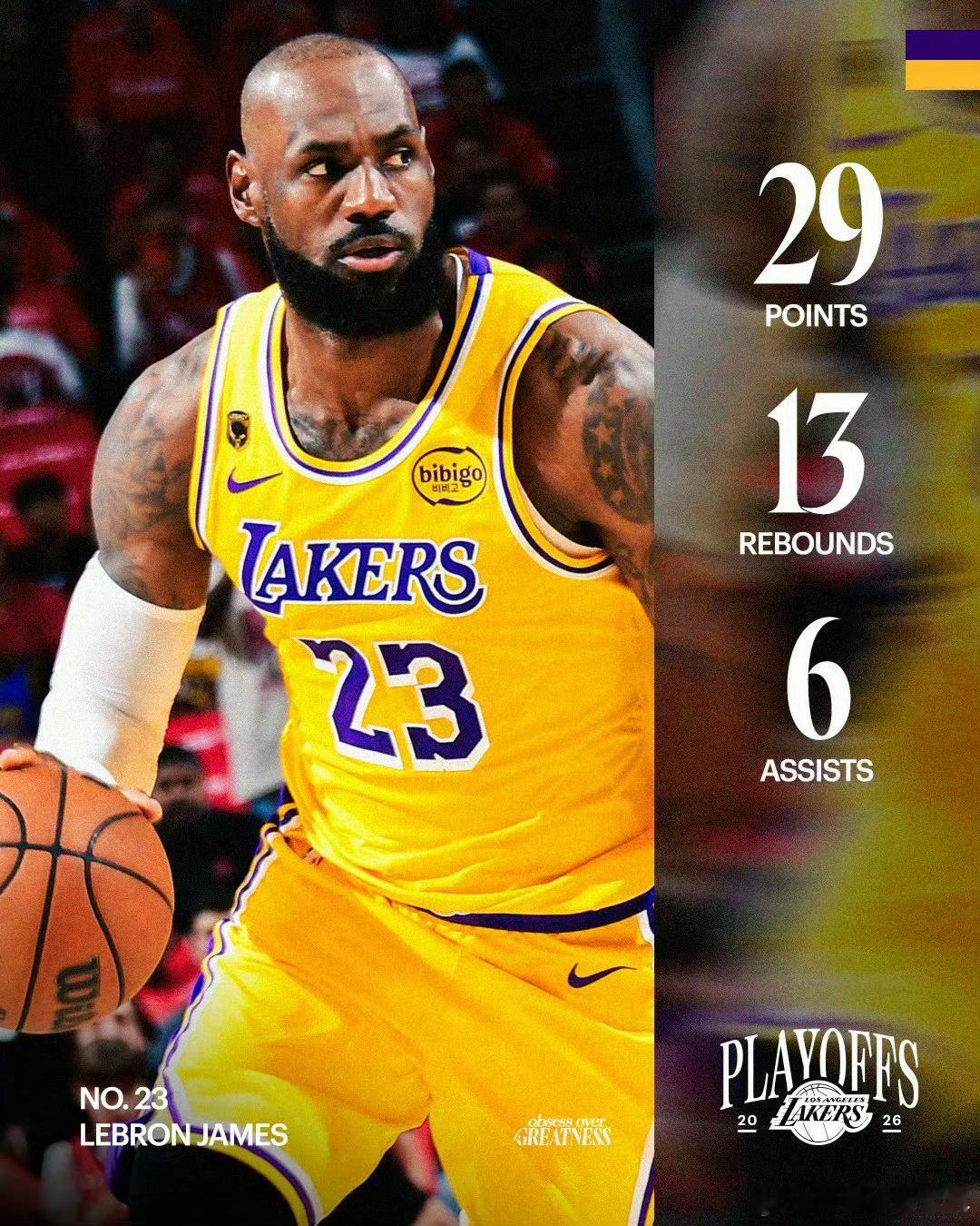 詹姆斯全场苦战45分钟,交出全面硬核数据:22投10中,三分9中4,罚球6中5斩获29分13篮板6助攻3抢断1盖帽以一己之力撑起攻防两端,用老将的铁血与大心脏改写战局。