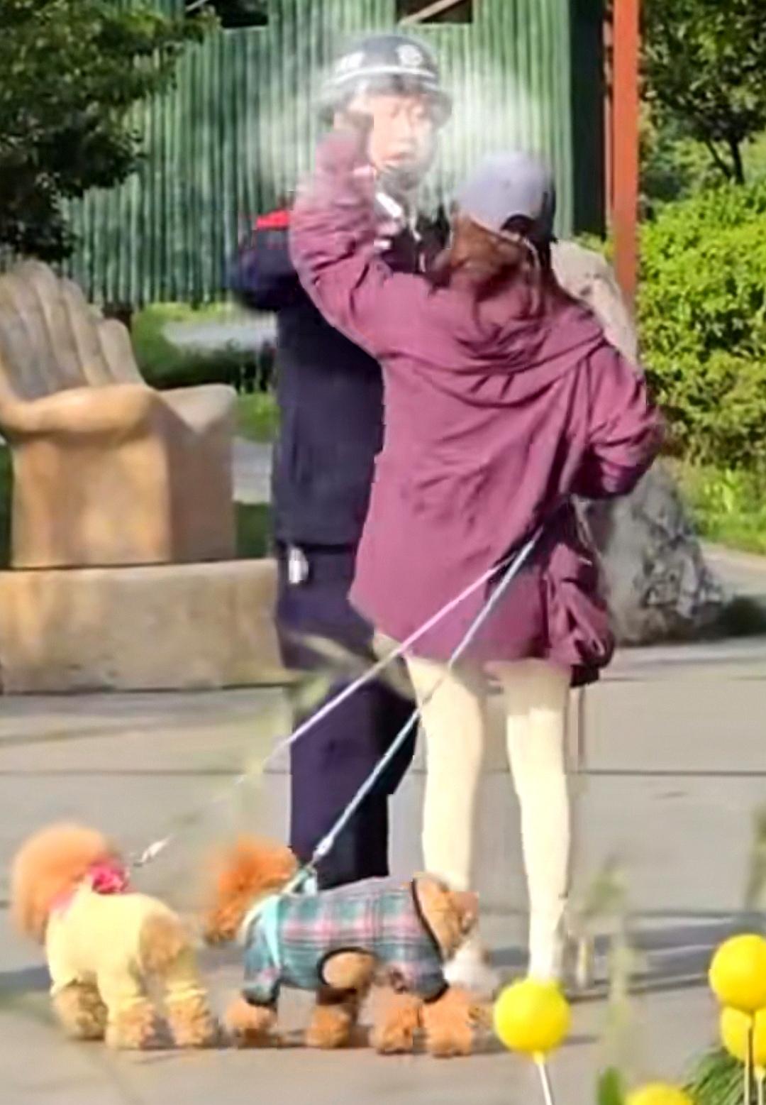 景区巡逻保安发现后,本着园区管理规定与公共安全考量,上前好心劝阻,耐心提醒女子立刻拴好狗绳,遵守文明养犬规则。谁知善意劝导非但没有被接纳,反而惹怒了这名女子。她当场态度蛮横,出言张嘴“国粹”式语言辱骂保安,还嚣张地用手指直指对方,言行极具挑衅。