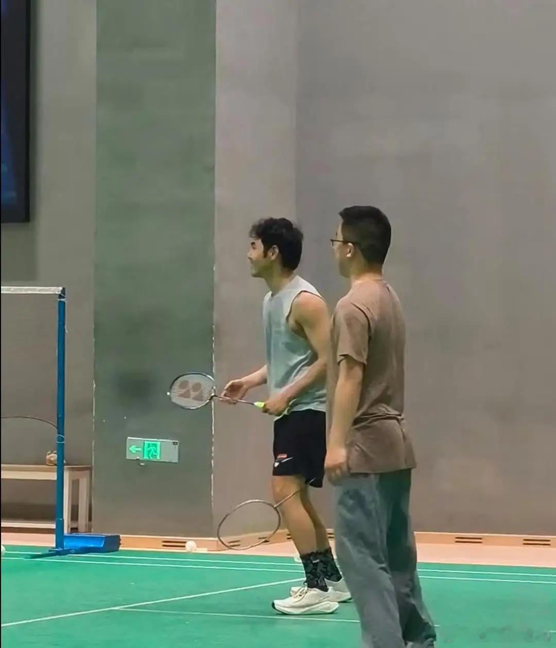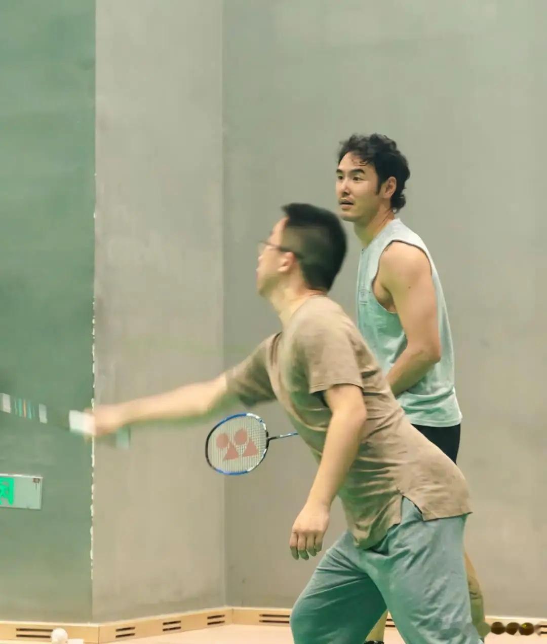 44岁阮经天和朋友在上海体育馆打羽毛球,他穿着无袖上衣,露出大手臂,身材好健硕,现实中真人看起来太帅了,男人味十足!。