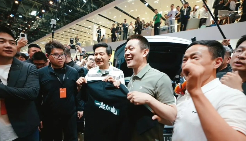 北京车展icon首日,雷军从蔚来ES8icon看到全新ES9,从乐道L90看到萤火虫,弯腰查底盘、坐进车里反复体验,比自家新车还仔细。李斌闻讯一路小跑过来喊"雷总",雷军笑着竖起大拇指。当天他送给李斌的T恤上印着四个字——"一起加电",李斌发微博感谢,评论区炸了:友商之间能这么夸?
