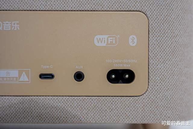 它需要插电使用(无内置电池),功率足够大,低音扎实不轰头。接口很全,支持Wi-Fi、BT、AUX、Type-C多信号输入方式,实现一机多用,Type-C口甚至能让它变成电脑的外置声卡。