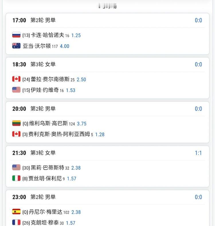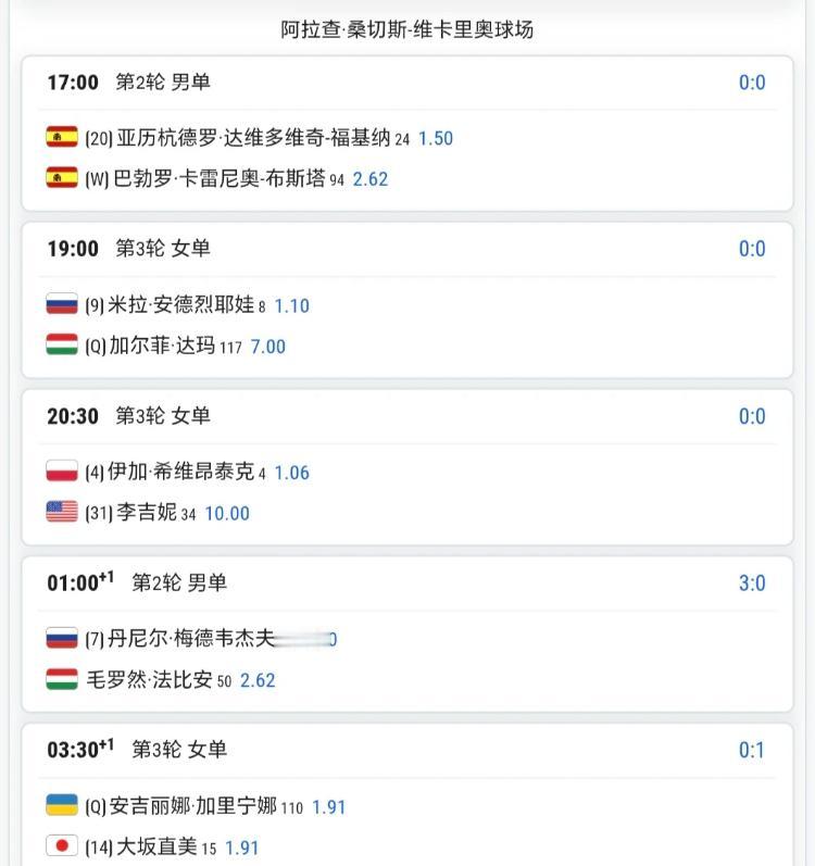 无需熬夜的时段有你想看的场次吗?网球巡回赛赛程