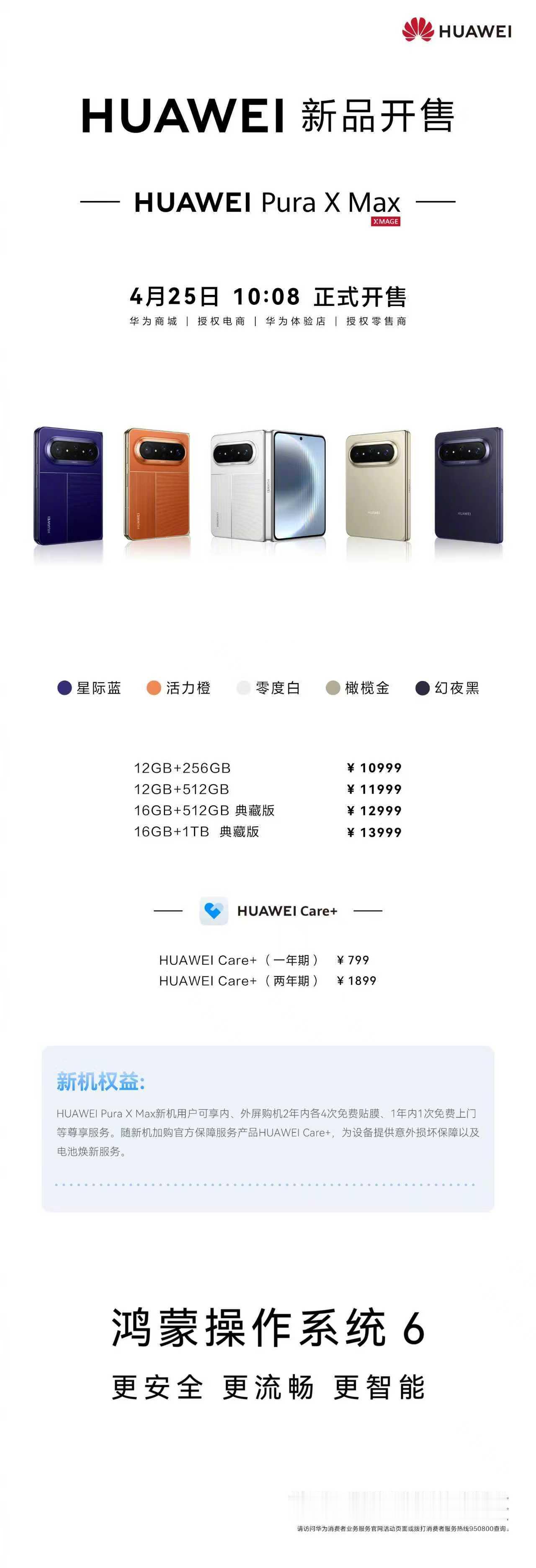 华为Pura X Max在4月25日10:08全渠道开售,作为全球首款大阔折,它可以说是高端折叠屏首选。华为PuraXMax系列正式开售