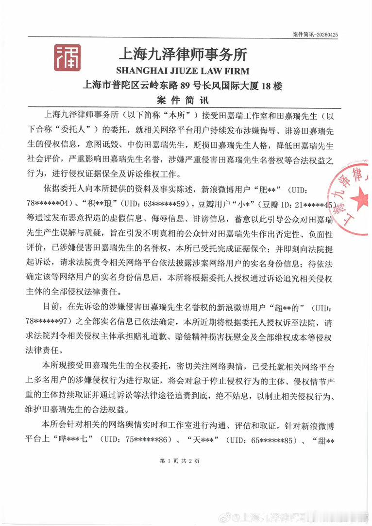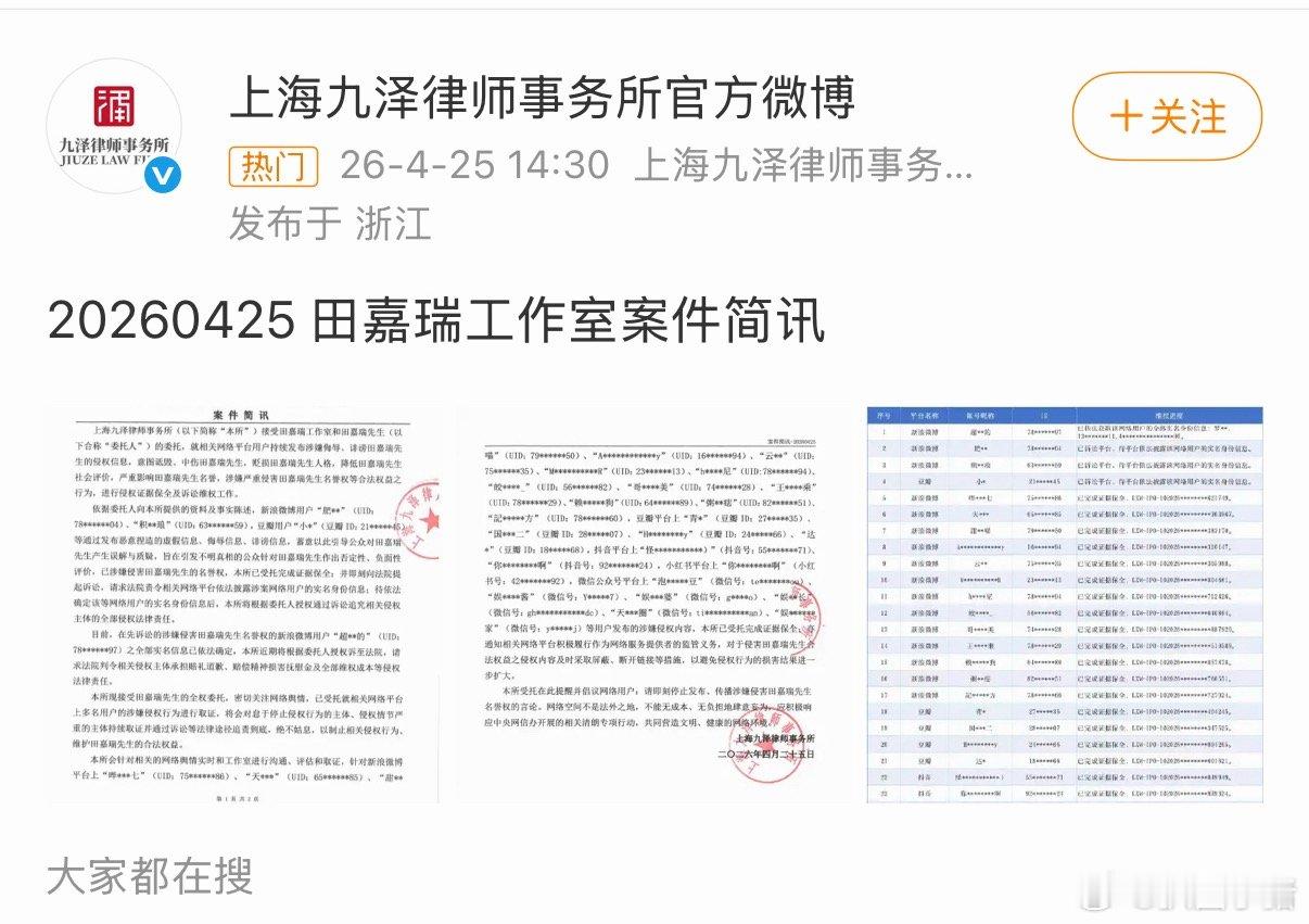 田嘉瑞方全平台告黑!支持田嘉瑞维权,网络不是法外之地