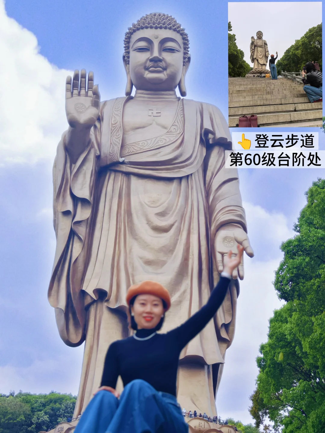 解锁和大佛击掌、牵手趣味合照,登顶还能近距离抱佛脚,祈福许愿