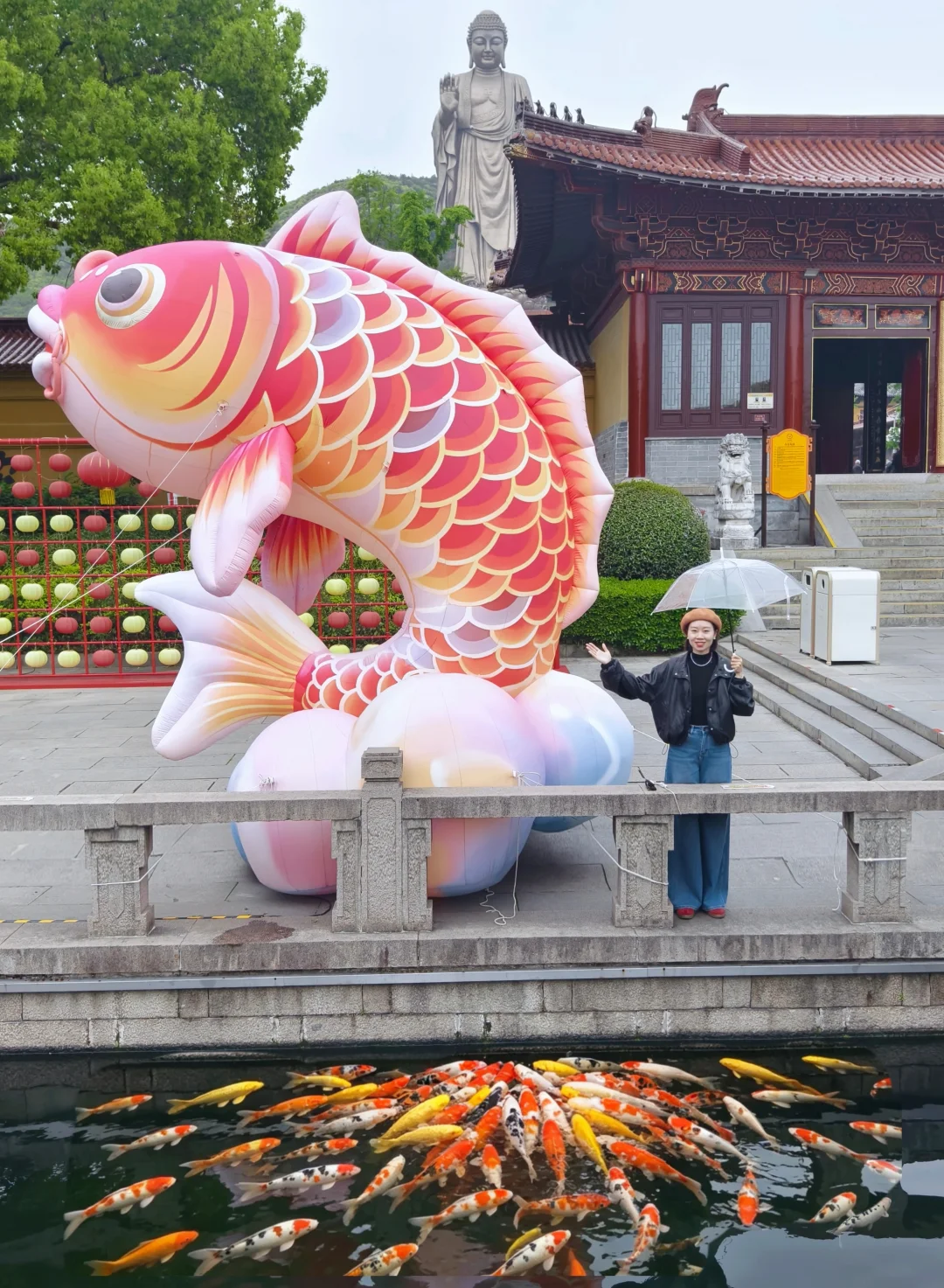 摸佛手接福气,湖边投喂锦鲤,求财求好运必来,氛围感超治愈