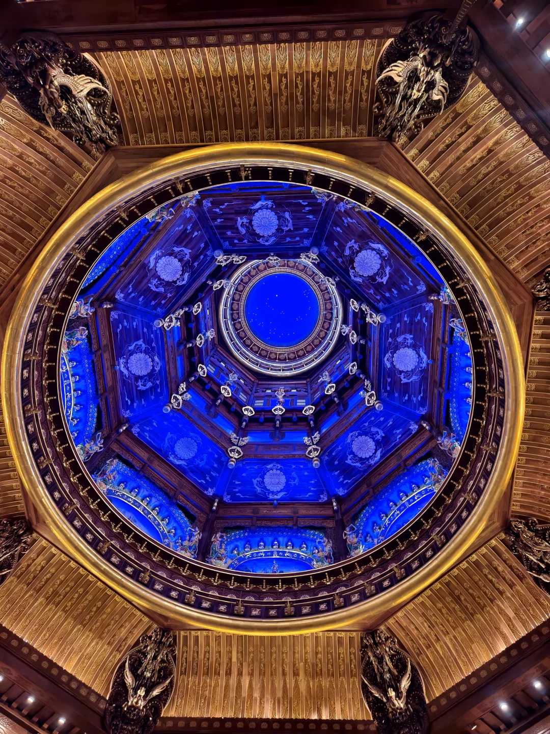 绝美梦幻星空顶,华丽又庄重,二楼就是素斋餐厅,游玩用餐一站式