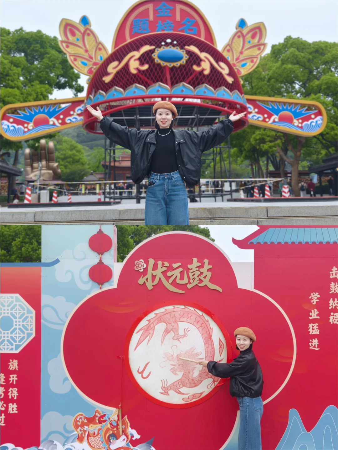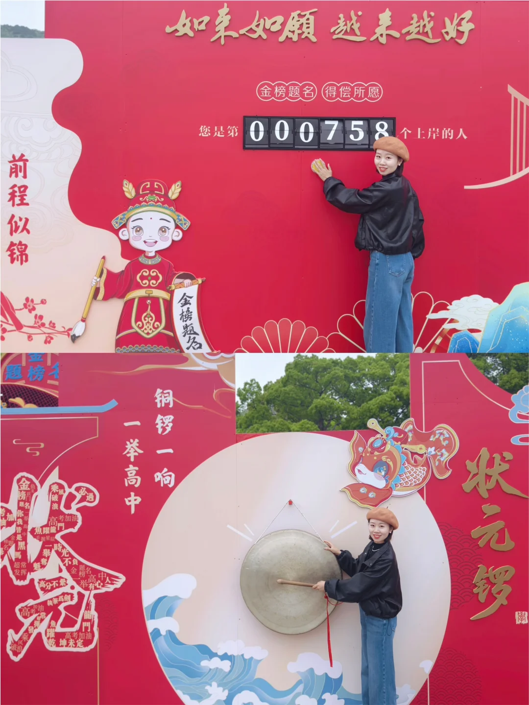 趣味互动打卡地,敲状元锣、擂状元鼓、戴巨型状元帽,仪式感拉满
