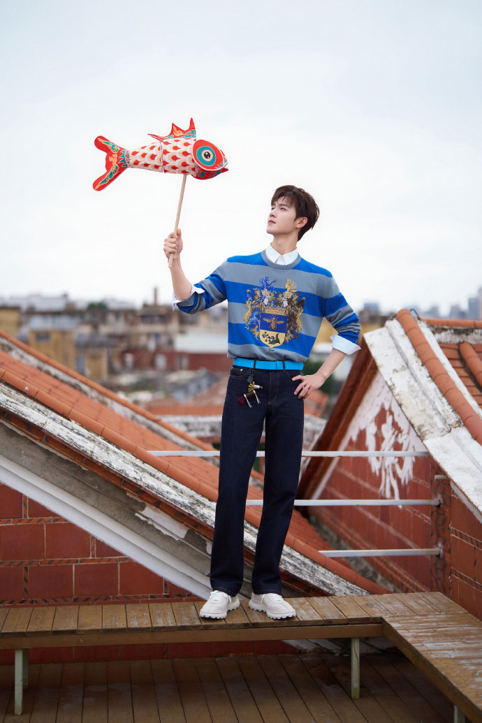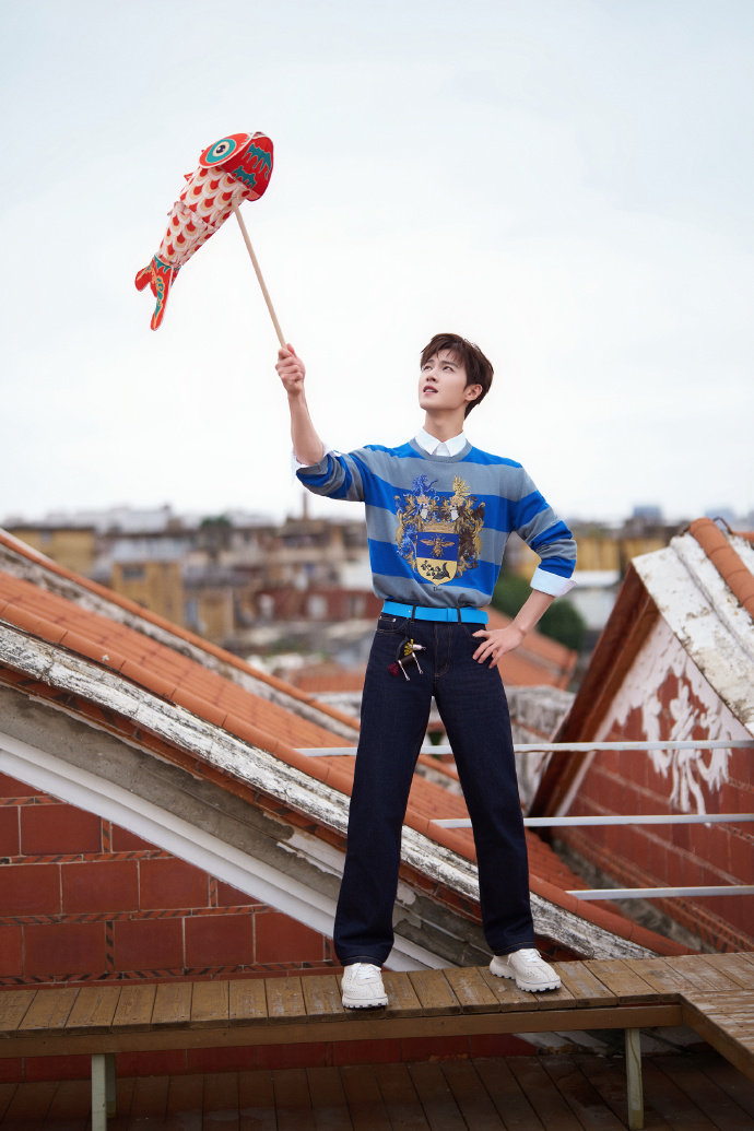 李昀锐十全十美手势舞李昀锐蓝灰条纹奔跑吧直播造型李昀锐蓝灰条纹奔跑吧直播造型,李