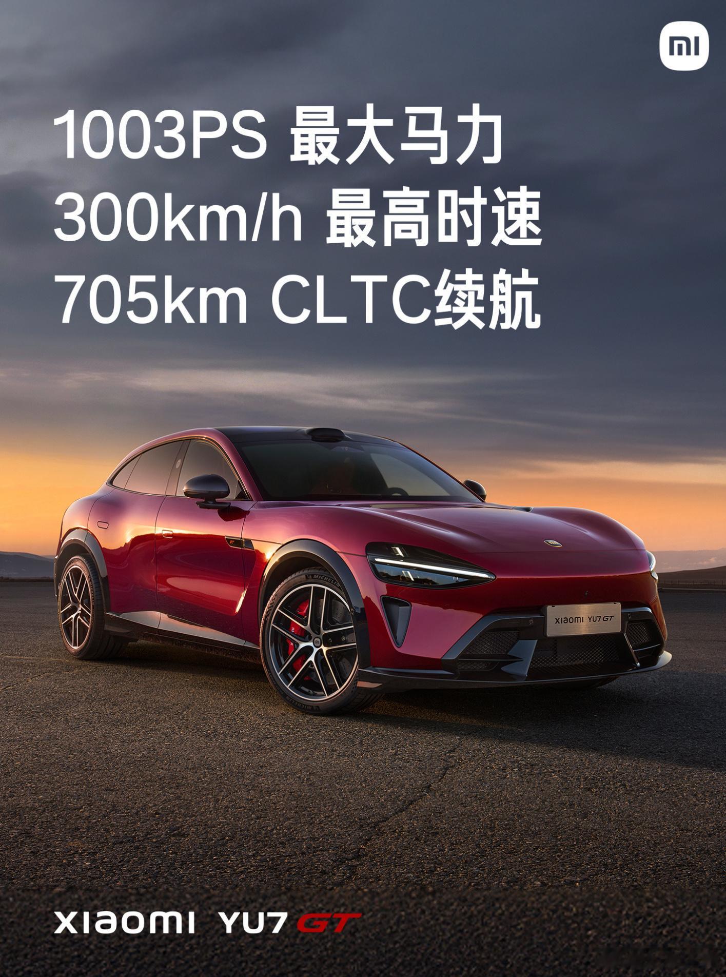 小米YU7 GT 黑化前唇和尾部扩散器,1003批马力,300km/h最高时速,705km CLTC续航。大家觉得起售价会是多少?