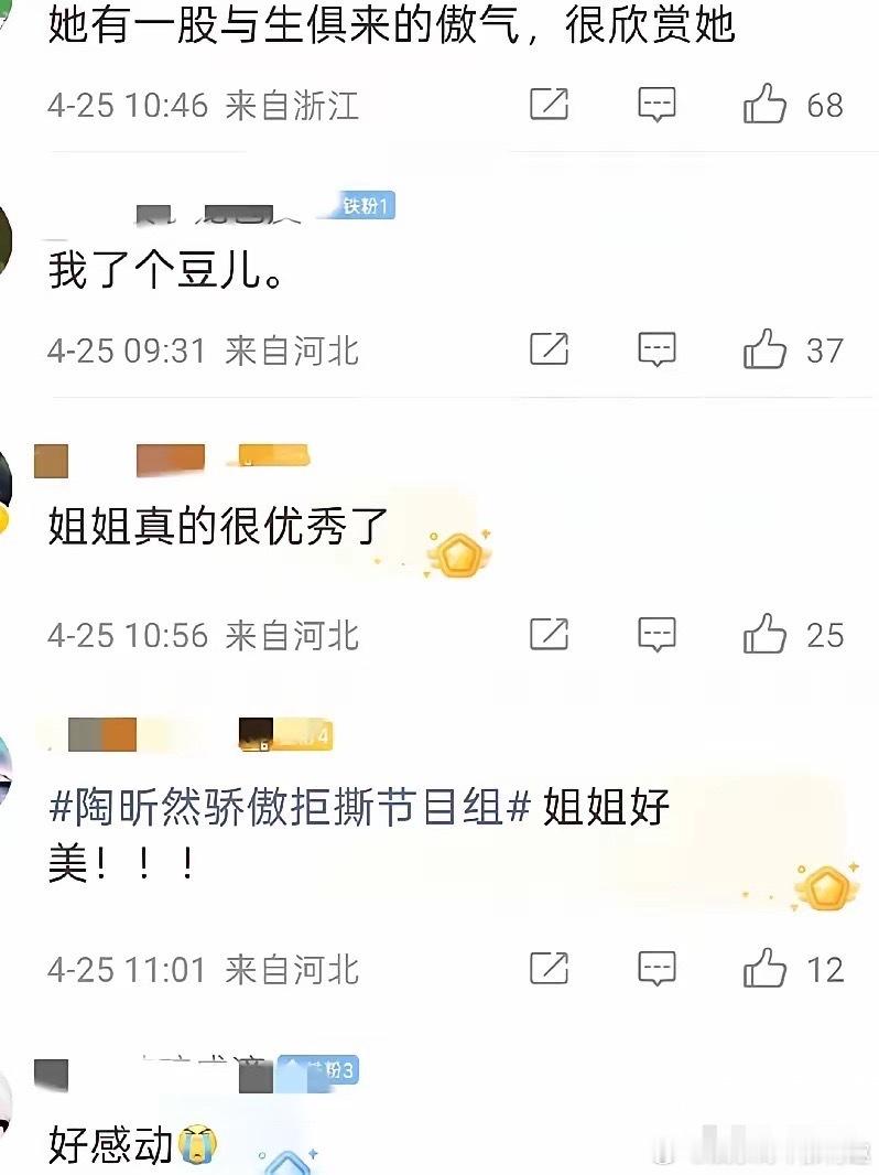陶昕然发长文回应淘汰面对淘汰的争议,她没有纠结“谁该走谁不该走”,反而温柔地祝福暂别的姐姐,也恳请大家保护留下来的同伴。那句“女性站在女性身后的画面特别动人”,瞬间戳中了很多人的心——她没把淘汰当成一场输赢,而是始终记得,这趟旅程里的彼此支撑,才是最珍贵的风景。而她最戳人的,是那句“我不害怕被淘汰,最害怕被恶剪”。41岁的她,依然保留着最真实的模样:不高兴就拉脸,难过会哭,累了就不想说话。可这份真实,在镜头里却很容易被加工成“不讨喜的人设”。她没有尖锐地指责,只是温柔恳请节目组“剪刀下留情”,既体面地表达了顾虑,也藏着对舞台的尊重和对制作团队的善意,这份分寸感,比任何辩解都更有力量。