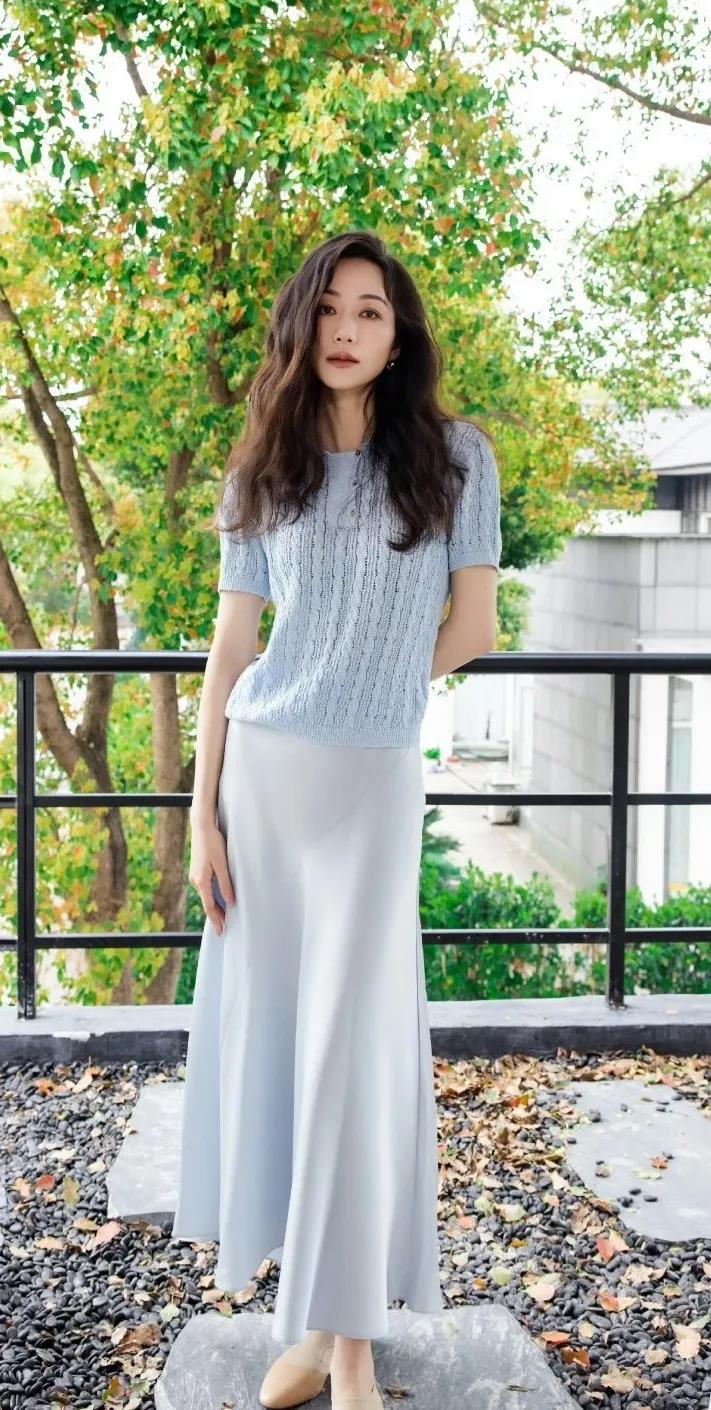 韩雪同款 雾霾蓝穿搭 温柔风穿搭 气质穿搭