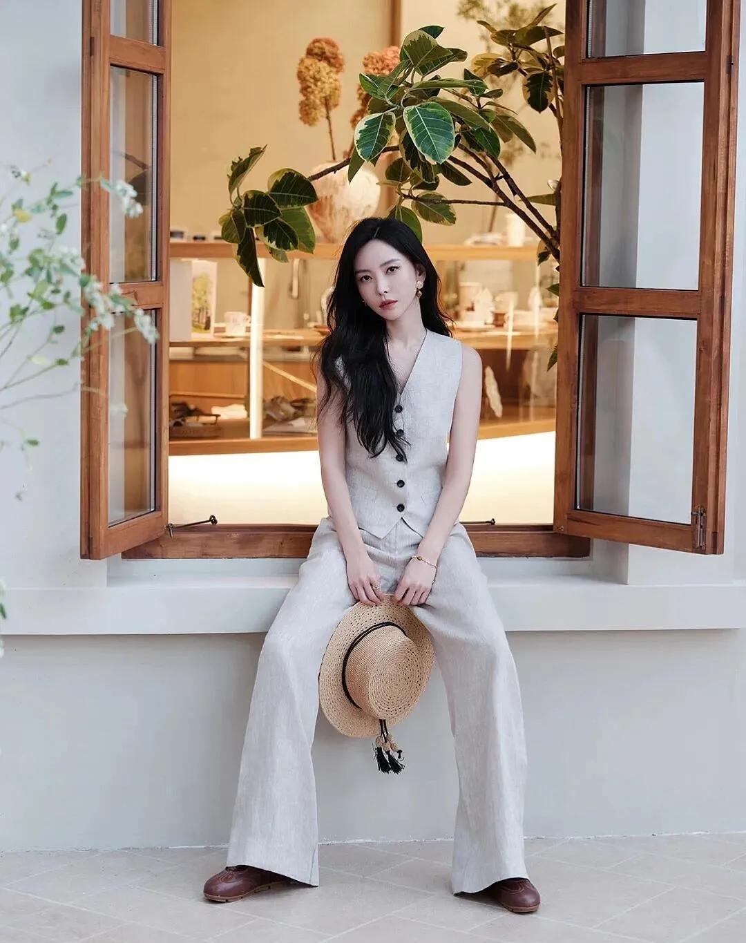 松弛又浪漫,这样的穿搭超美!浅蓝衬衫配卡其半裙,白无袖搭棕短裤,或是亮色块撞出