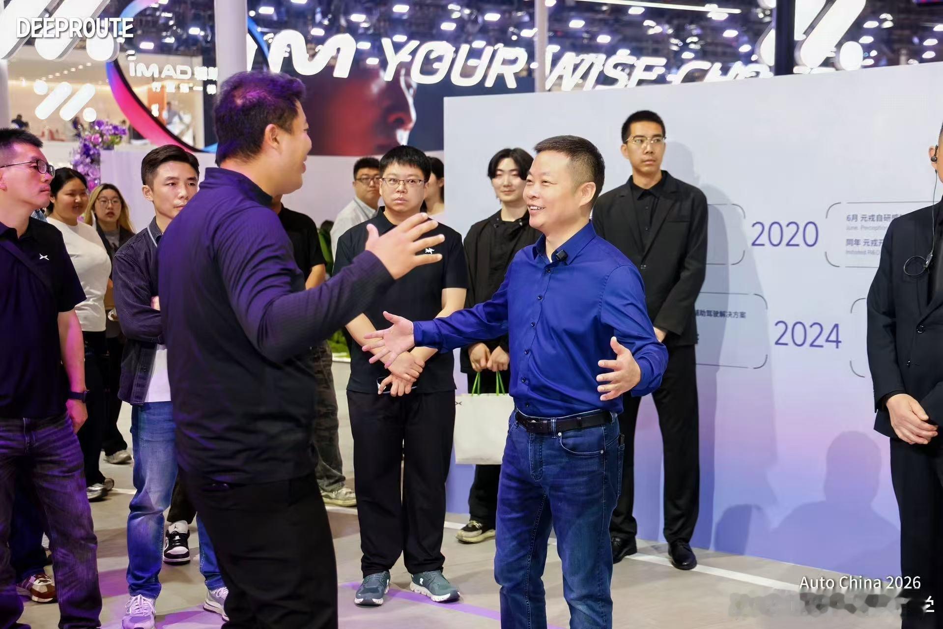 何小鹏到访北京车展元戎展台,畅聊VLA,一句简单的「我看好你们」尽显风度和友好氛围。