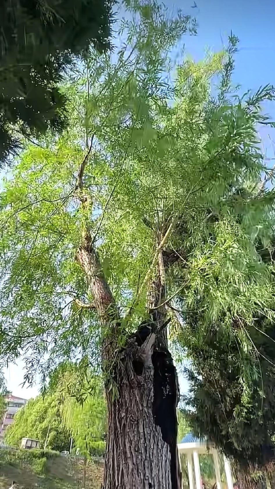 科学解释很简单:树活不活,不靠中心那截“死木头”。水分和养分是靠树皮内侧的韧皮部和木质部运输的,只要这层“运输管道”没断,树就能活。这棵柳树虽然烧空了心,但外皮完好,管道还在,养分照样往上送,春天一来自然发芽。