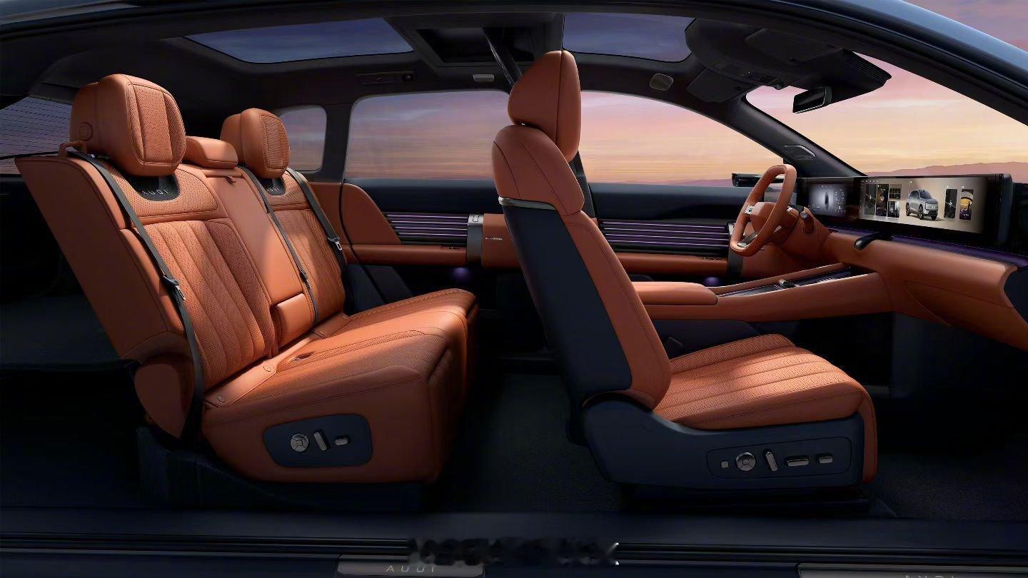 这就是奥迪E7X在做的事:不是堆料,是把"家的逻辑"搬进车里。一间客厅需要什么?好看的材质、舒服的座椅、好听的音响、让人放松的氛围——它全有了。