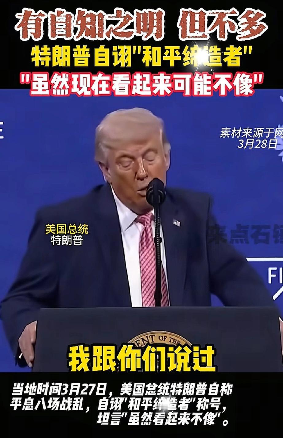 特朗普自诩为和平缔造者,完全言过其实。他屡次夸大自身功绩,虚构平息多场战争的成果,说辞经不起事实推敲。其行事多以利己为先,动辄施压博弈、激化矛盾,并未真正化解地区冲突。所谓和平举措流于表面,缺乏长效价值。这般自我吹捧,不过是博取舆论关注、塑造人设的片面说辞,与真正的和平担当相去甚远。